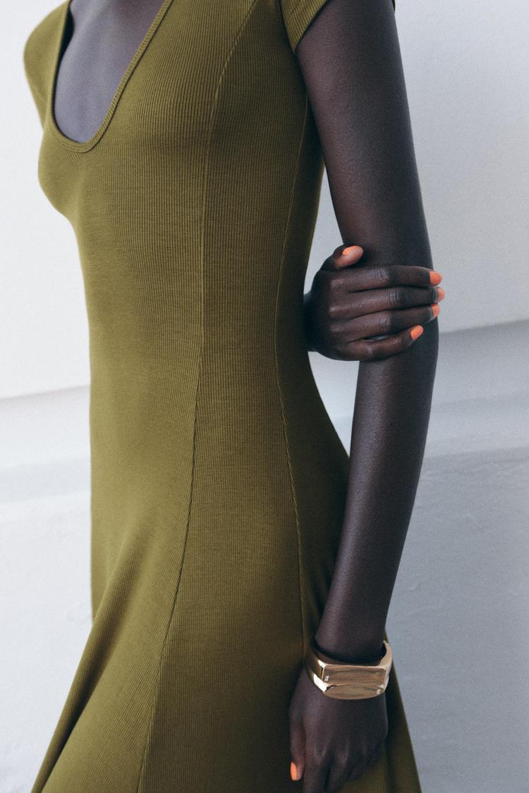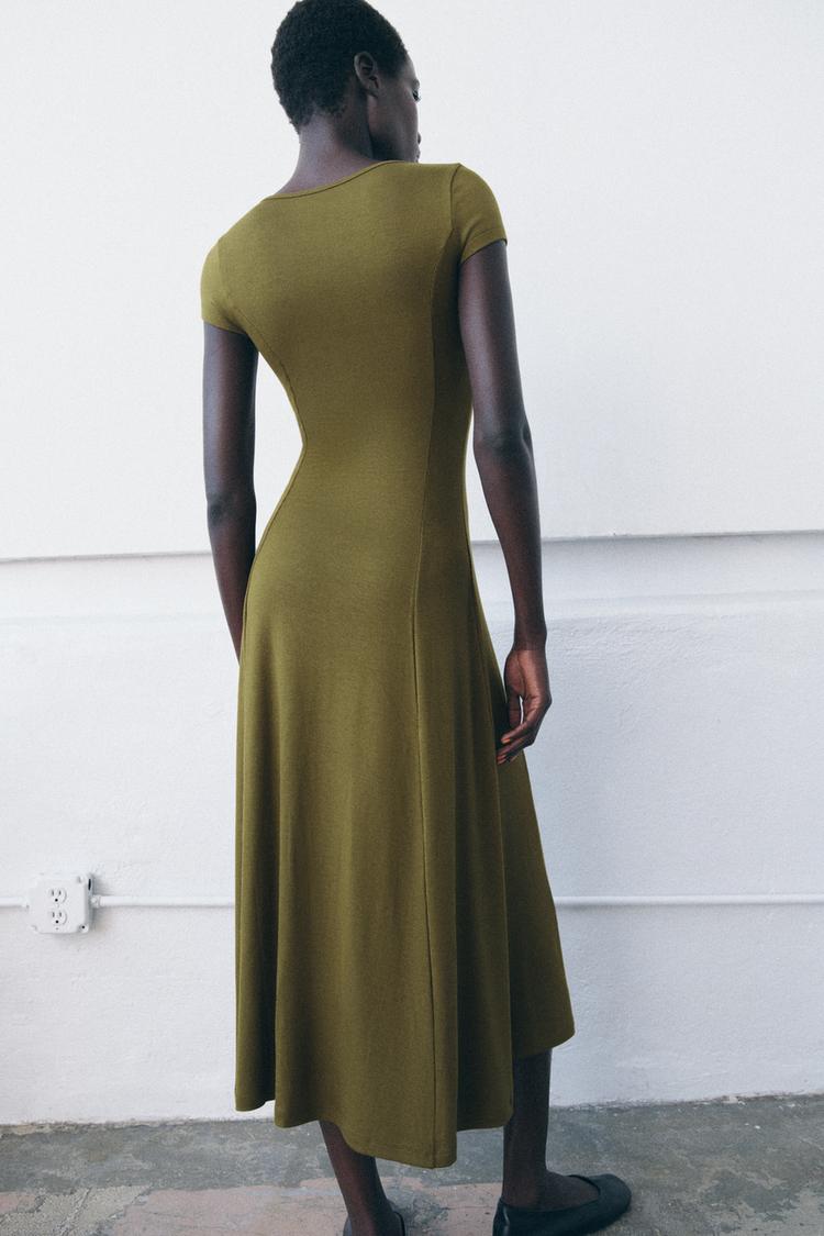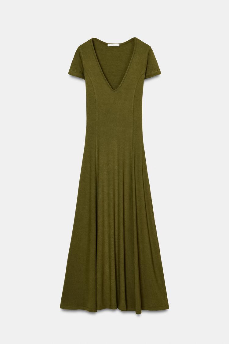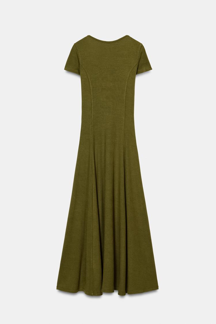 ZARA ДЛИННОЕ ПЛАТЬЕ В РУБЧИК, ТЕМНО-ОЛИВКОВЫЙ