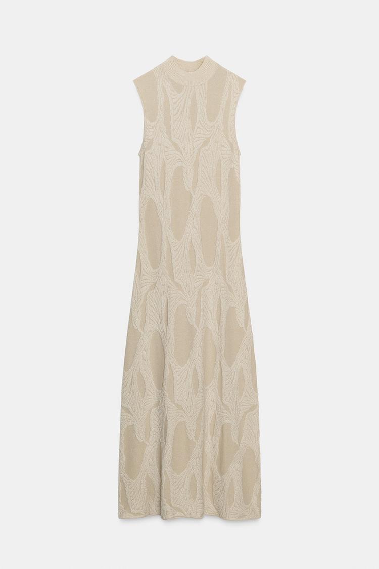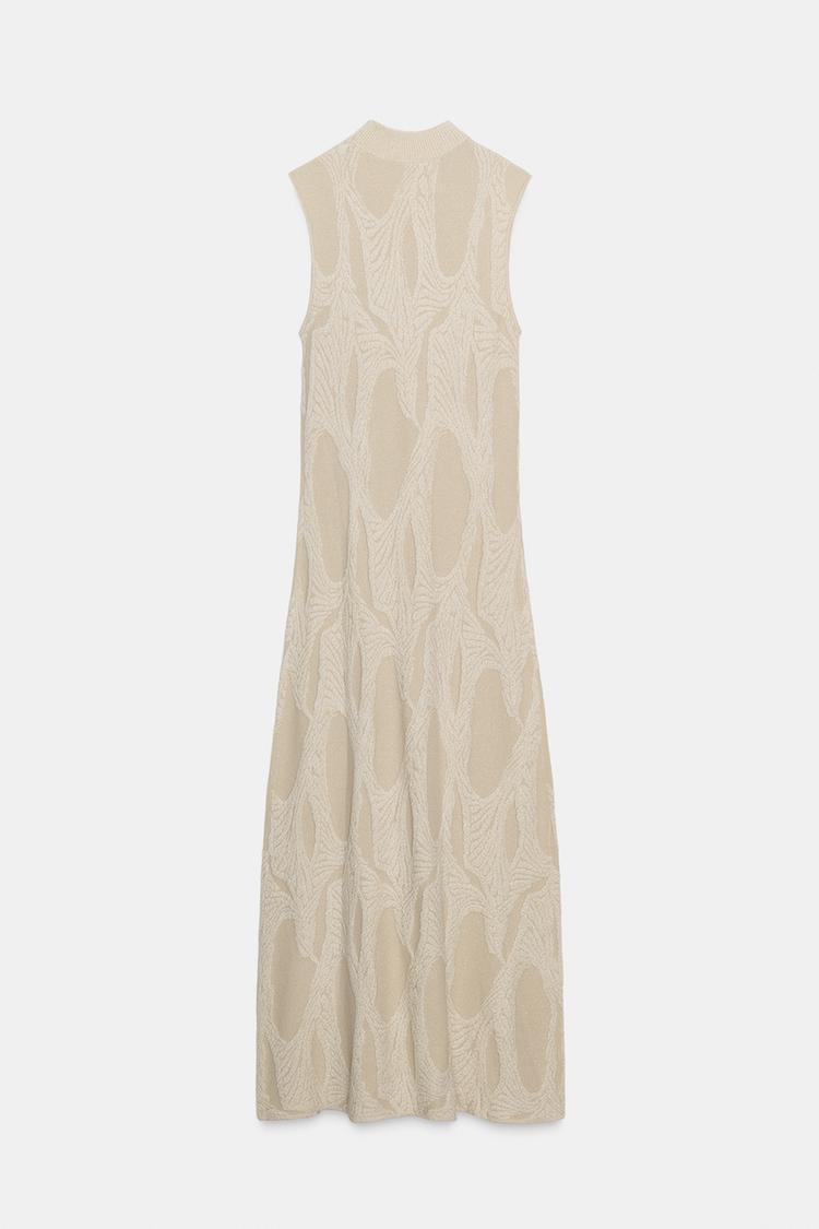 ZARA ДЛИННОЕ ЖАККАРДОВОЕ ПЛАТЬЕ, СЛОНОВАЯ КОСТЬ