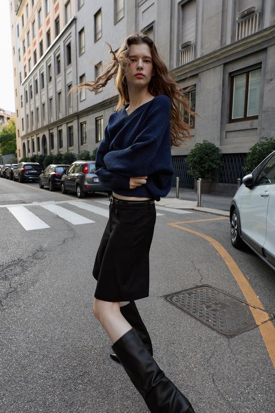 ZARА ДЛИННЫЕ БЕРМУДЫ КЛЕШ, ЧЕРНЫЙ