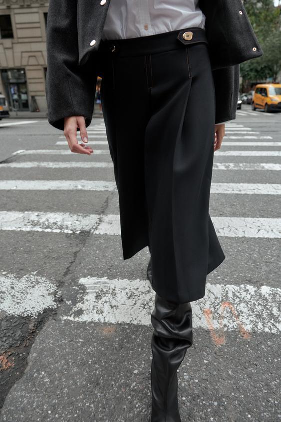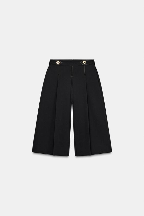 ZARА ДЛИННЫЕ БЕРМУДЫ С КОНТРАСТНОЙ ОТДЕЛКОЙ, ЧЕРНЫЙ