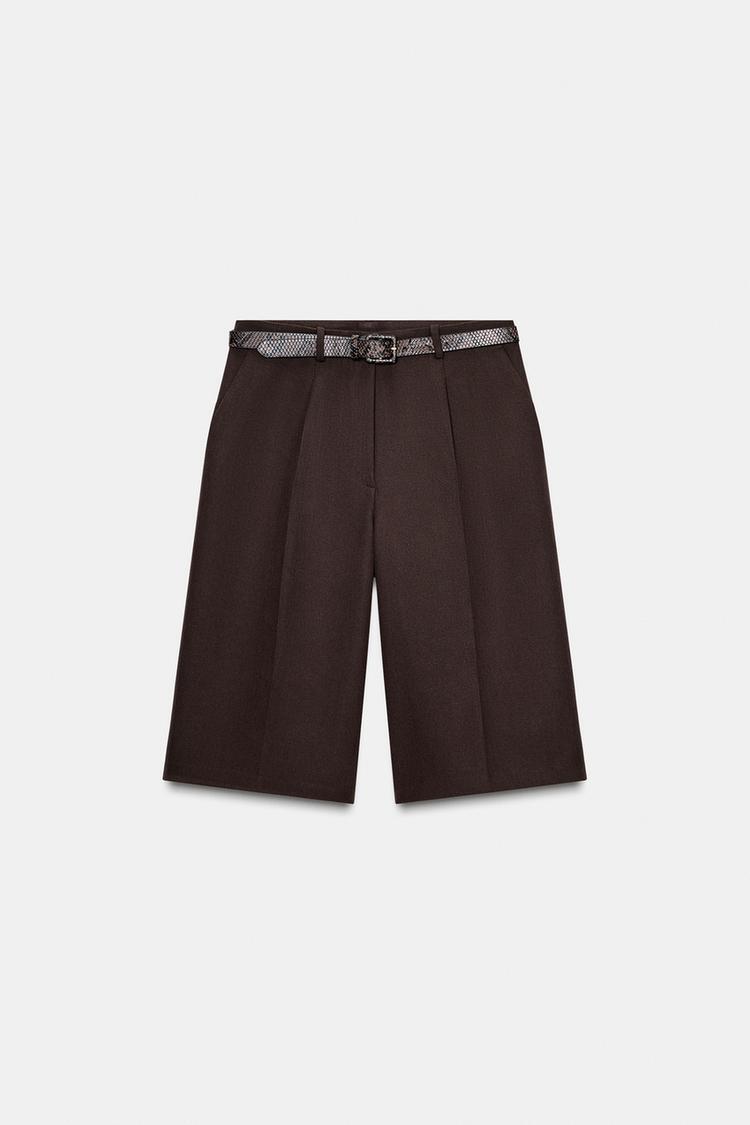 ZARA ДЛИННЫЕ БЕРМУДЫ С РЕМНЕМ, КОРИЧНЕВЫЙ