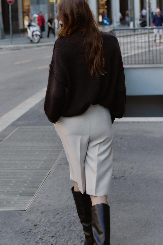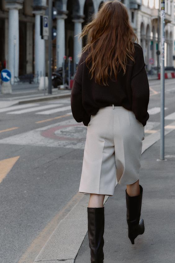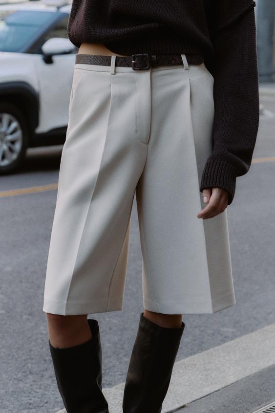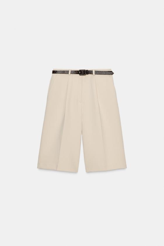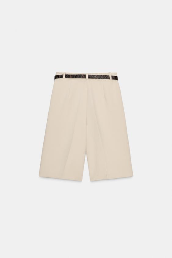 ZARА ДЛИННЫЕ БЕРМУДЫ С РЕМНЕМ, СЛОНОВАЯ КОСТЬ