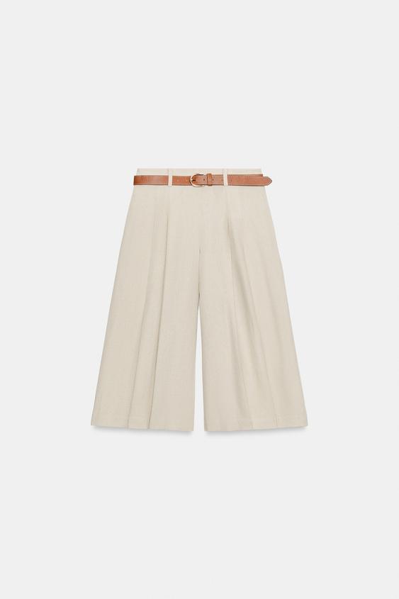 ZARA ДЛИННЫЕ БЕРМУДЫ С РЕМНЕМ, СВЕТЛО-БЕЖЕВЫЙ