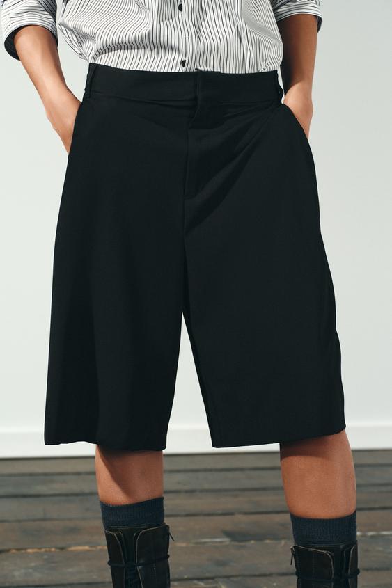 ZARА ДЛИННЫЕ БЕРМУДЫ СО СКЛАДКАМИ, ЧЕРНЫЙ