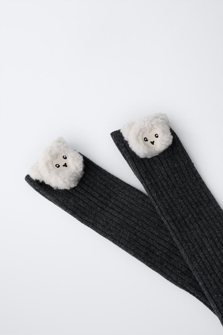 ZARA ДЛИННЫЕ НОСКИ В РУБЧИК С ДЕТАЛЬЮ «ЖИВОТНОЕ», АНТРАЦИТОВО-СЕРЫЙ