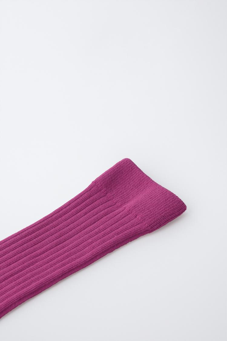 ZARA ДЛИННЫЕ НОСКИ В РУБЧИК, ТЕМНАЯ ФУКСИЯ