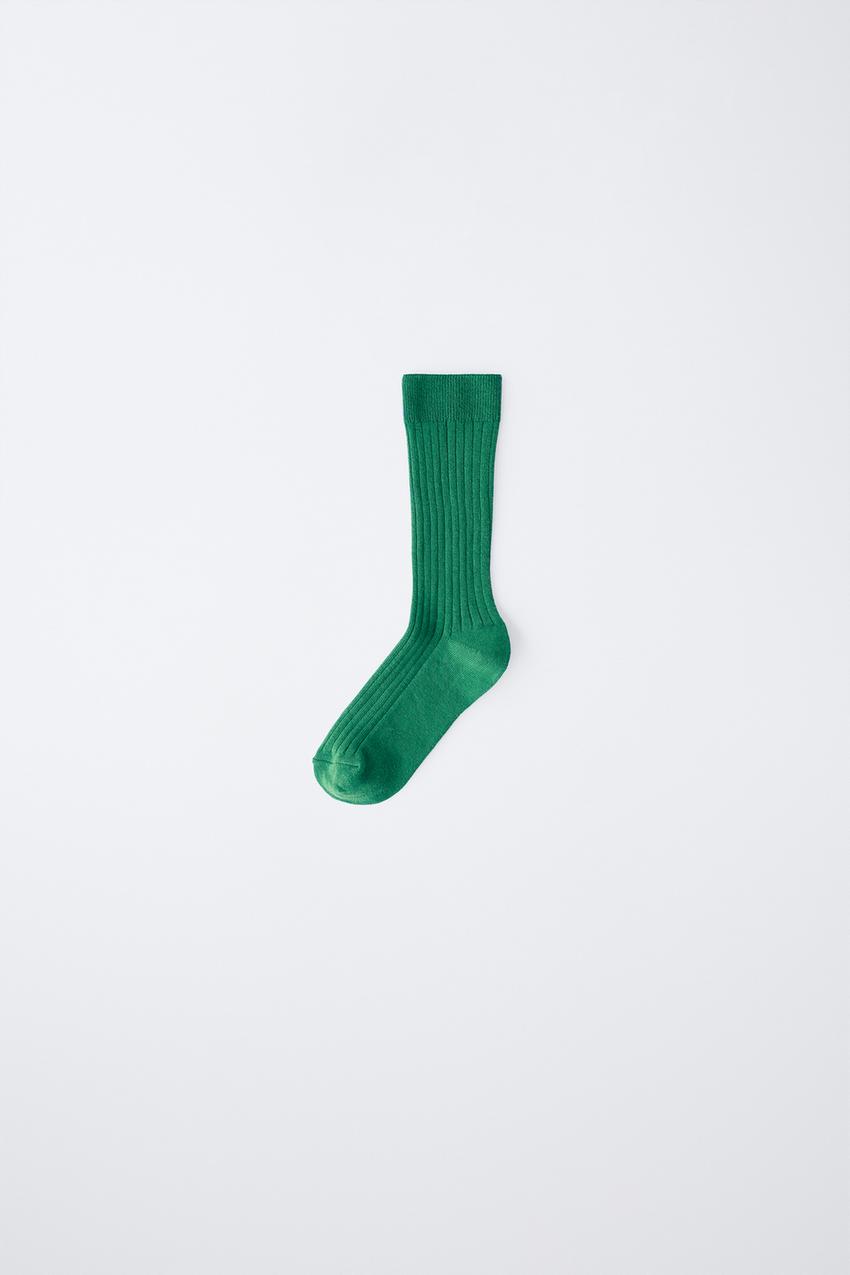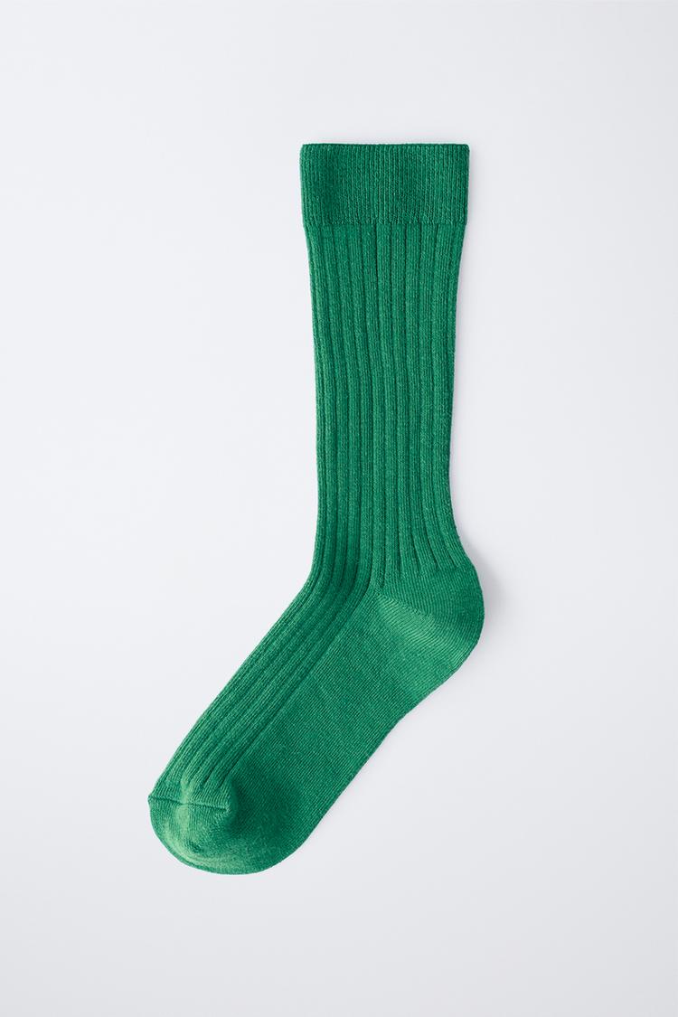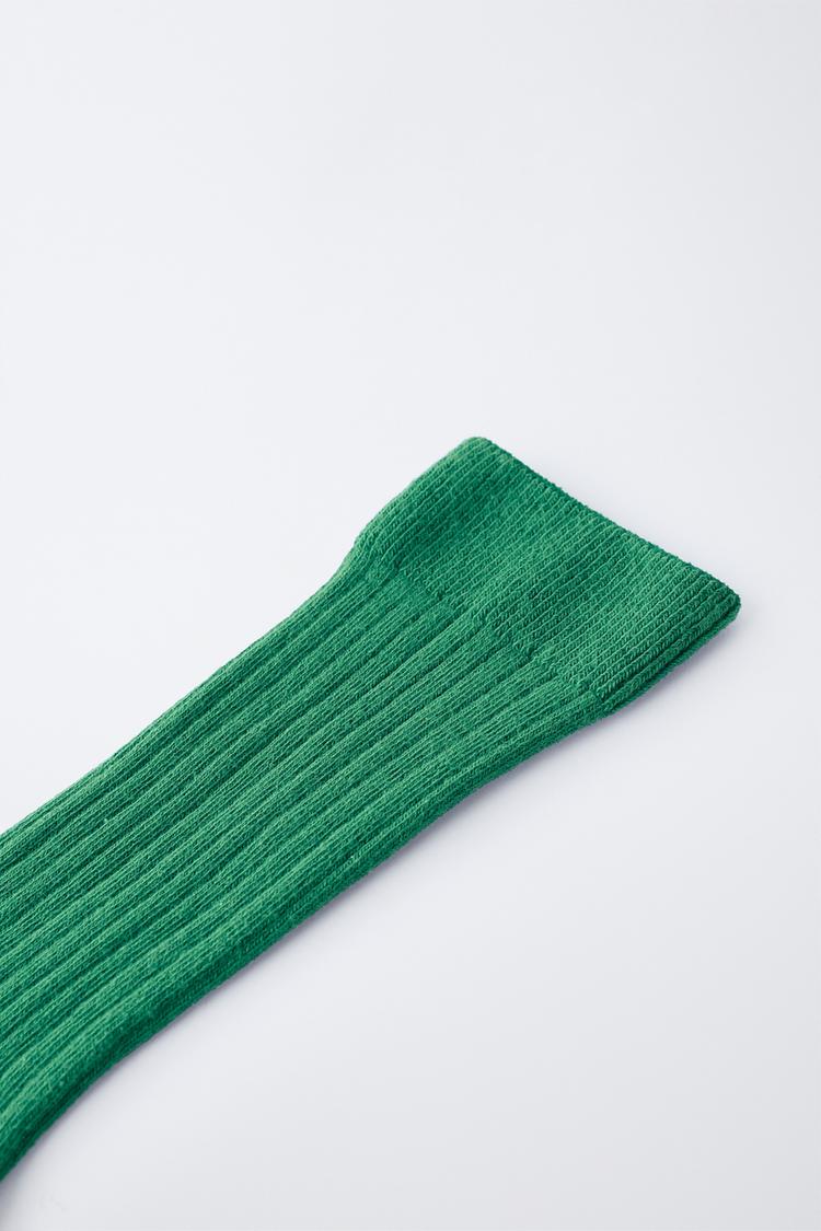 ZARA ДЛИННЫЕ НОСКИ В РУБЧИК, ЗЕЛЕНЫЙ