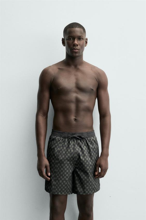ZARA ДЛИННЫЕ ПЛАВКИ В КЛЕТКУ, ЧЕРНЫЙ