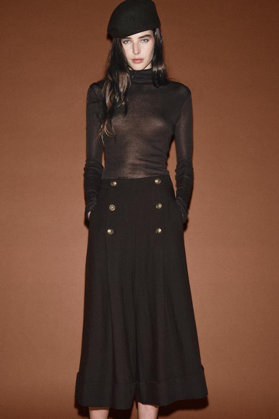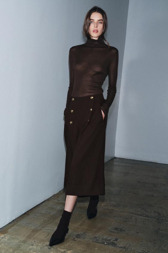 ZARA ДЛИННЫЕ ШОРТЫ С ПУГОВИЦАМИ ИЗ 100% ШЕРСТИ — ZW COLLECTION, ТЕМНО-КОРИЧНЕВЫЙ