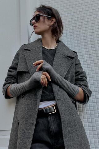 ZARA ДЛИННЫЕ ТРИКОТАЖНЫЕ МИТЕНКИ, СЕРЫЙ