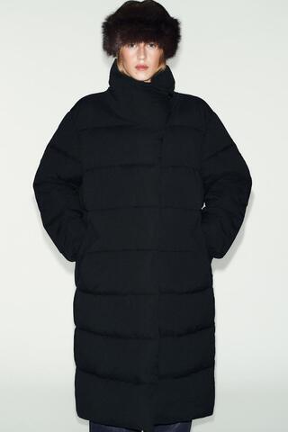 ZARA ДЛИННЫЙ АНОРАК С ВЫСОКИМ ВОРОТНИКОМ WATER REPELLENT WINDPROOF, ЧЕРНЫЙ