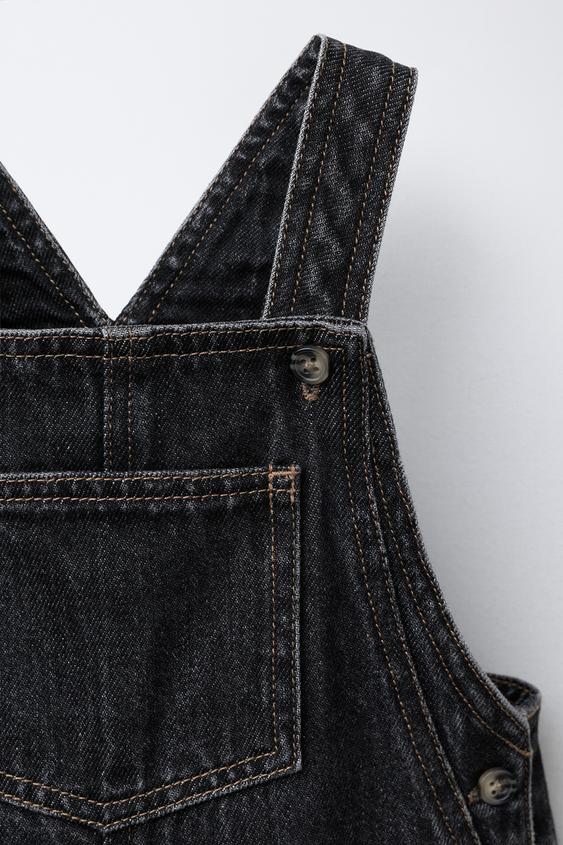 ZARA ДЛИННЫЙ ДЖИНСОВЫЙ КОМБИНЕЗОН, ЧЕРНЫЙ
