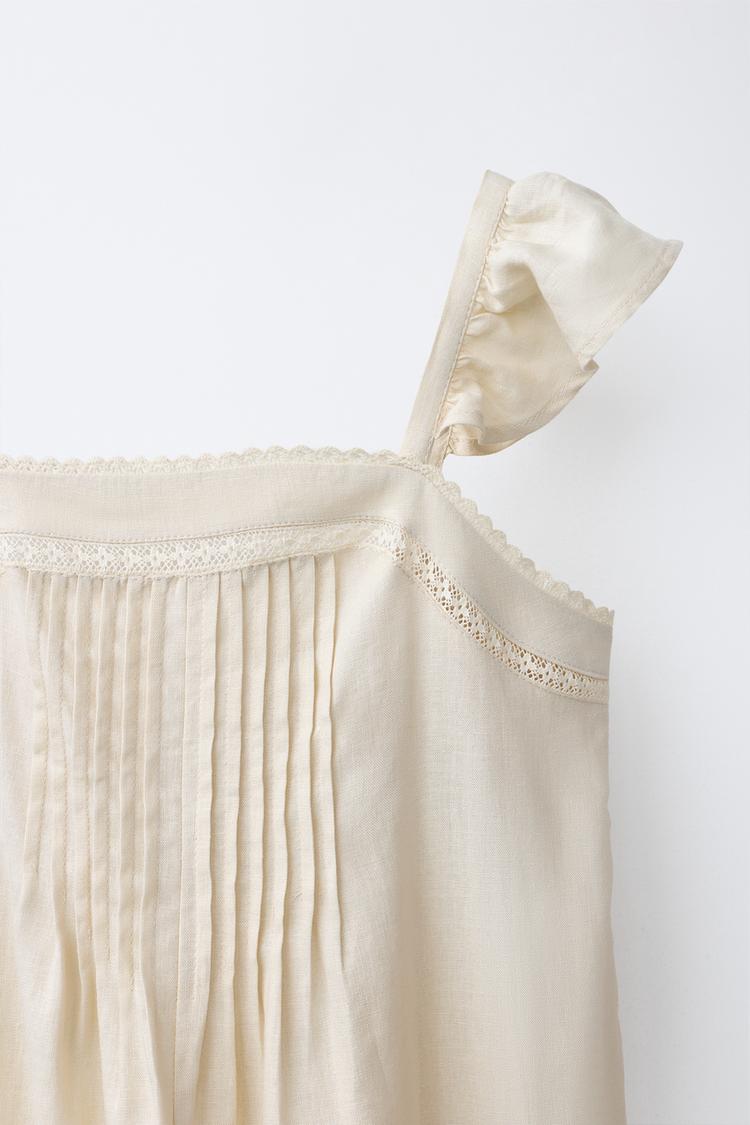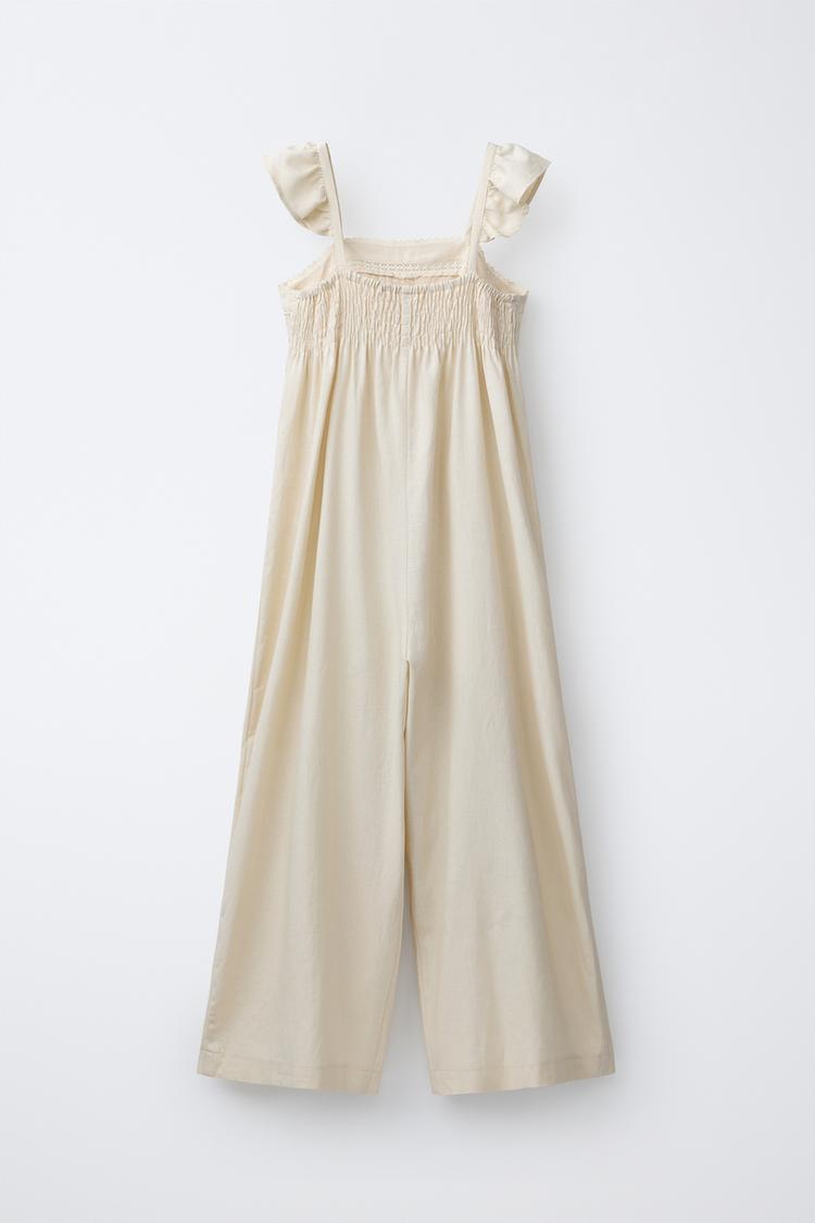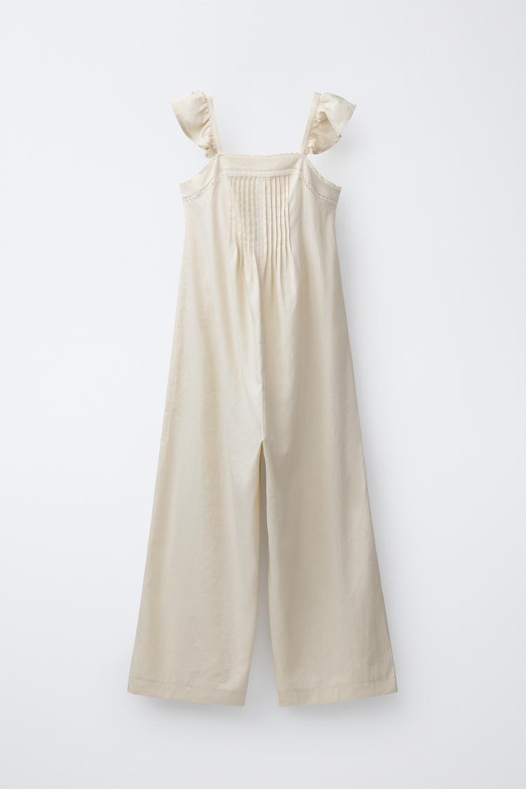ZARA ДЛИННЫЙ КОМБИНЕЗОН ИЗ ЛЬНА С КРУЖЕВОМ, ЭКРЮ