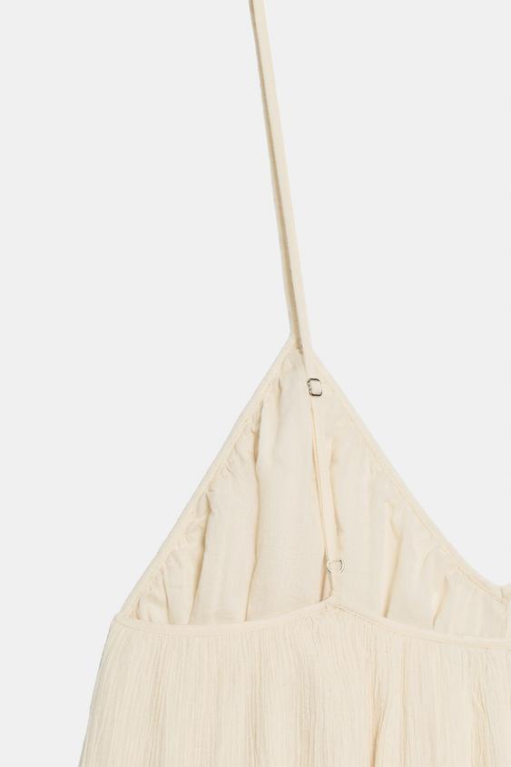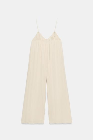 ZARA ДЛИННЫЙ КОМБИНЕЗОН НА БРЕТЕЛЯХ С ТЕКСТУРОЙ, КАМЕННО-СЕРЫЙ