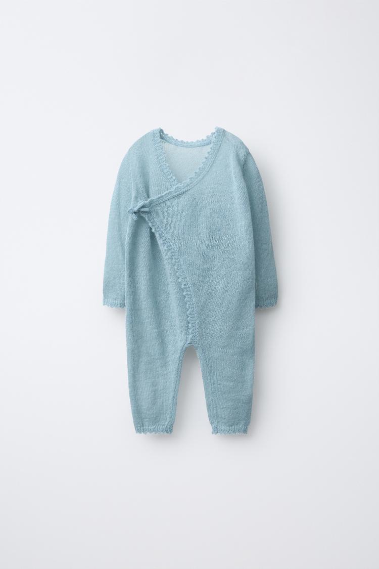 ZARA ДЛИННЫЙ КОМБИНЕЗОН С АЖУРНЫМИ ВСТАВКАМИ, ПАСТЕЛЬНО-СИНИЙ