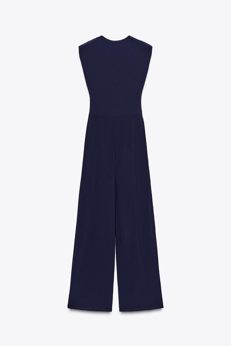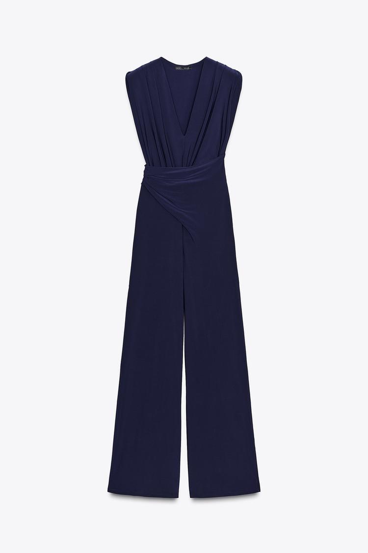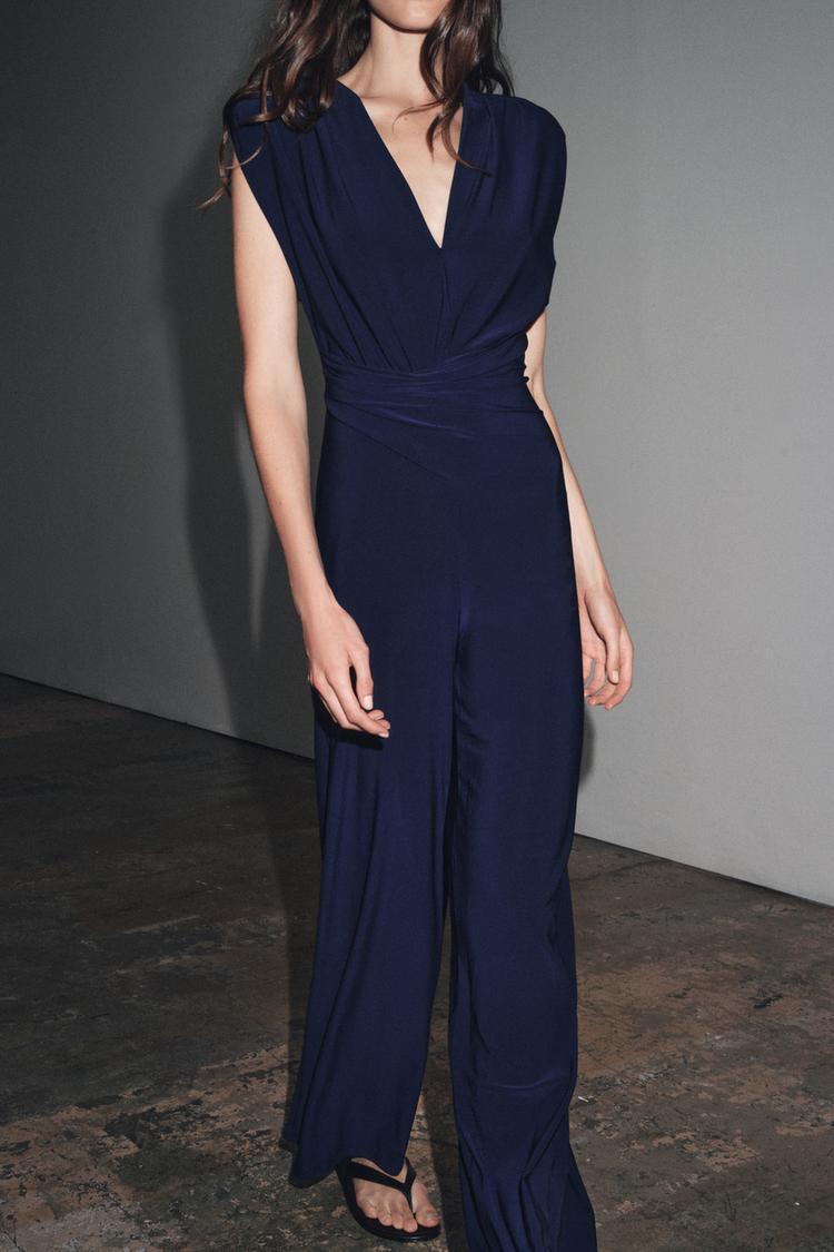 ZARA ДЛИННЫЙ КОМБИНЕЗОН С ПОДПЛЕЧНИКАМИ И ДРАПИРОВКОЙ, МОРСКОЙ СИНИЙ