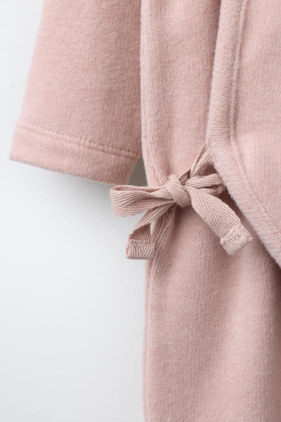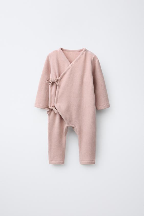 ZARA ДЛИННЫЙ КОМБИНЕЗОН SOFT TOUCH С БАНТАМИ, РОЗОВЫЙ