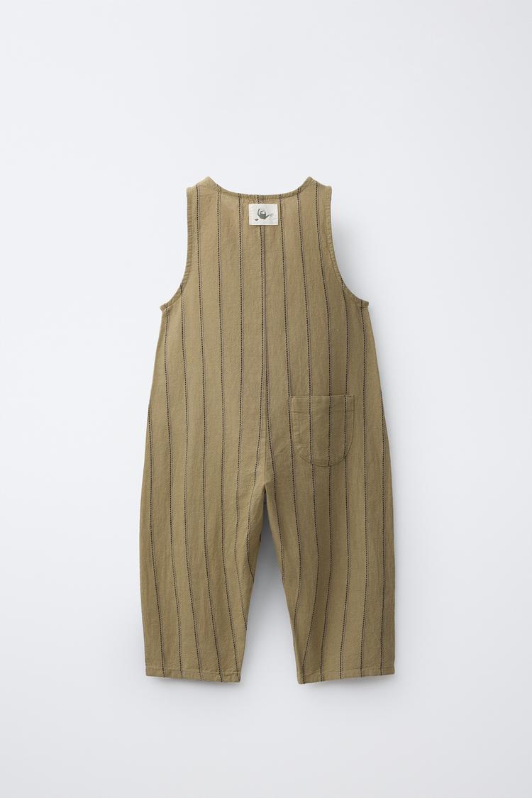 ZARA ДЛИННЫЙ КОМБИНЕЗОН В ПОЛОСКУ ИЗ ХЛОПКА И ЛЬНА, ХАКИ