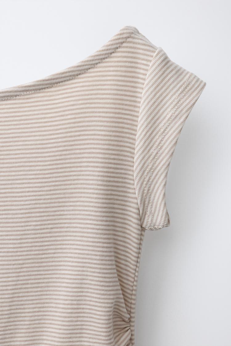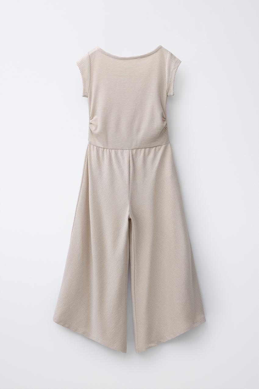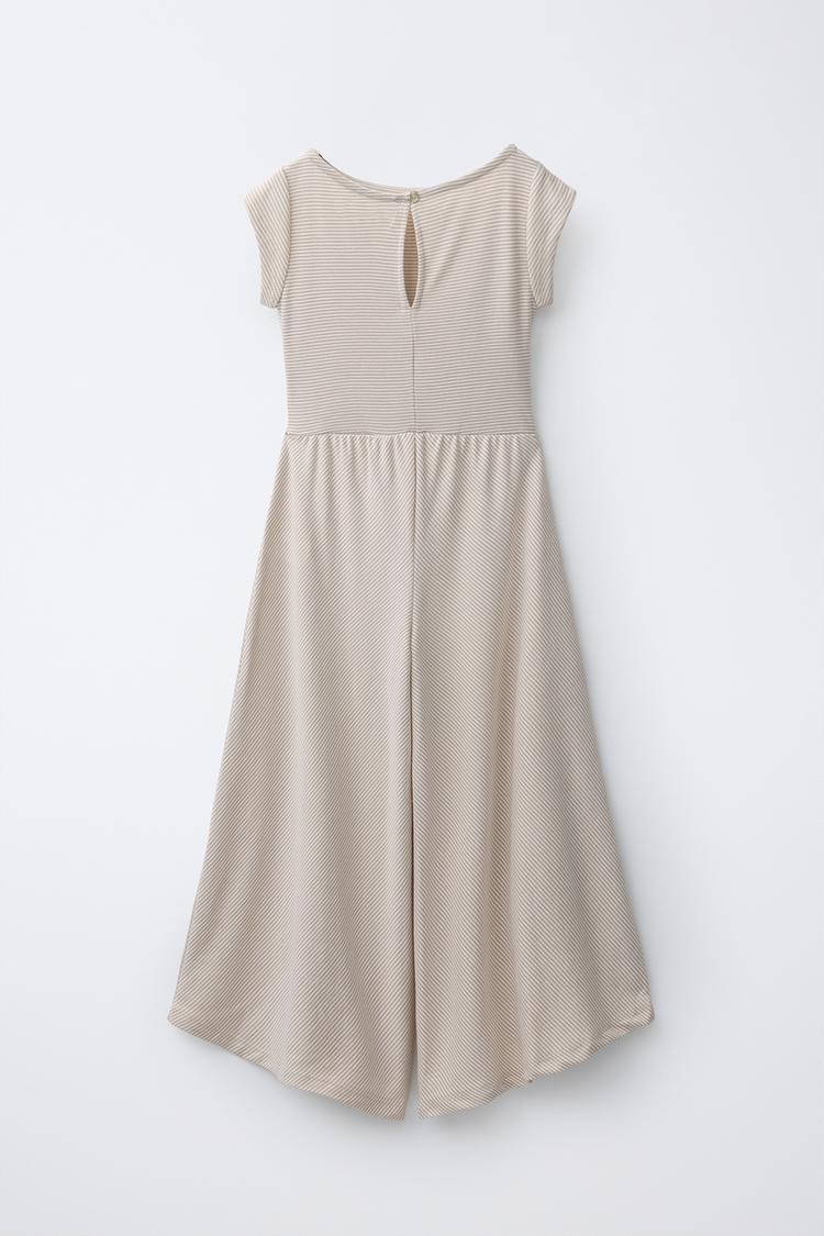 ZARA ДЛИННЫЙ КОМБИНЕЗОН В ПОЛОСКУ, ПЕСОЧНЫЙ