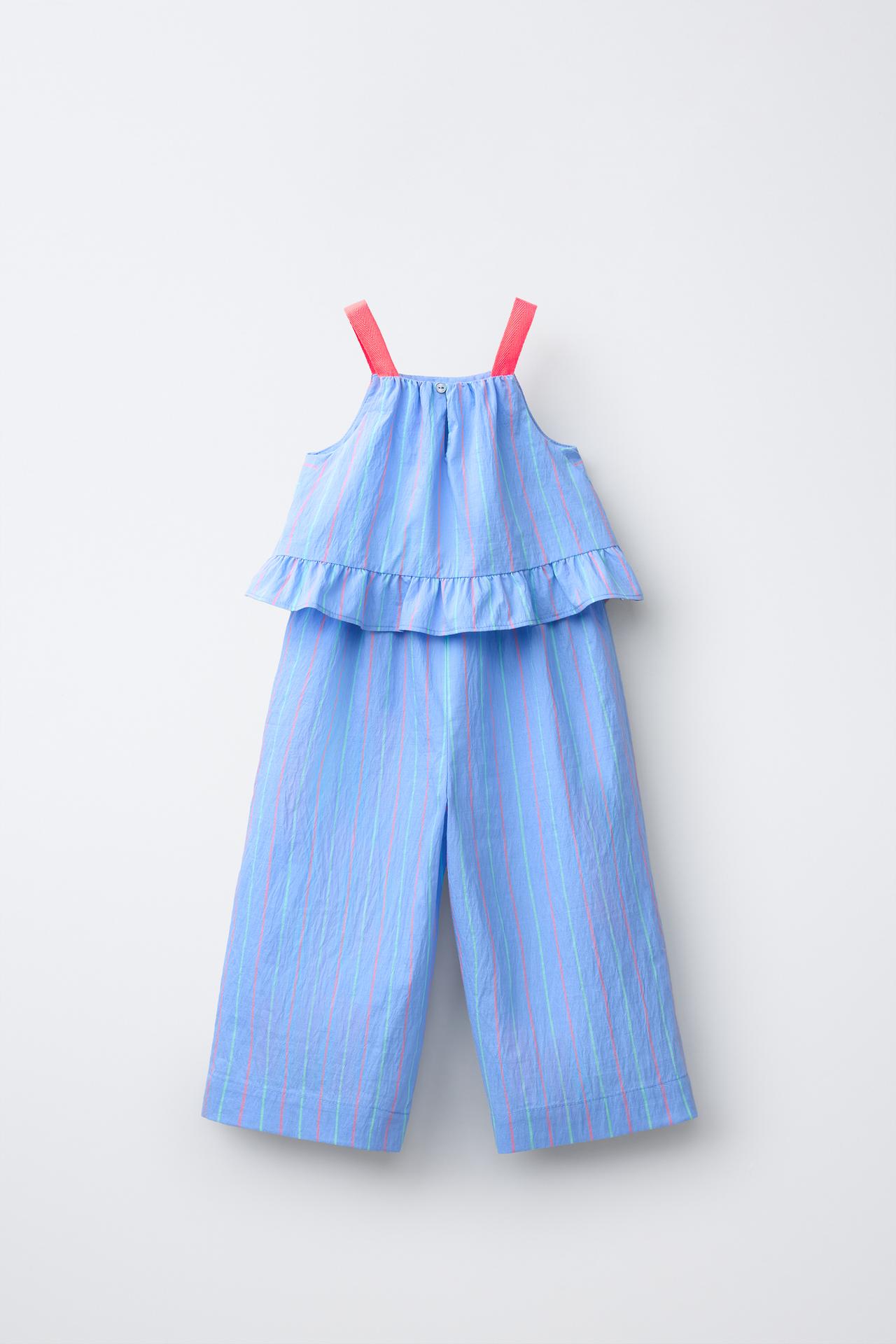 ZARA ДЛИННЫЙ КОМБИНЕЗОН В ПОЛОСКУ, СИНИЙ
