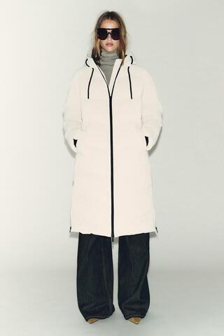 ZARA ДЛИННЫЙ ПРОРЕЗИНЕННЫЙ АНОРАК WINDPROOF С КАПЮШОНОМ, СВЕТЛО-БЕЖЕВЫЙ