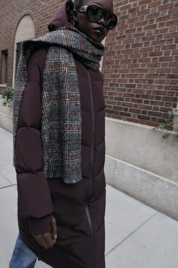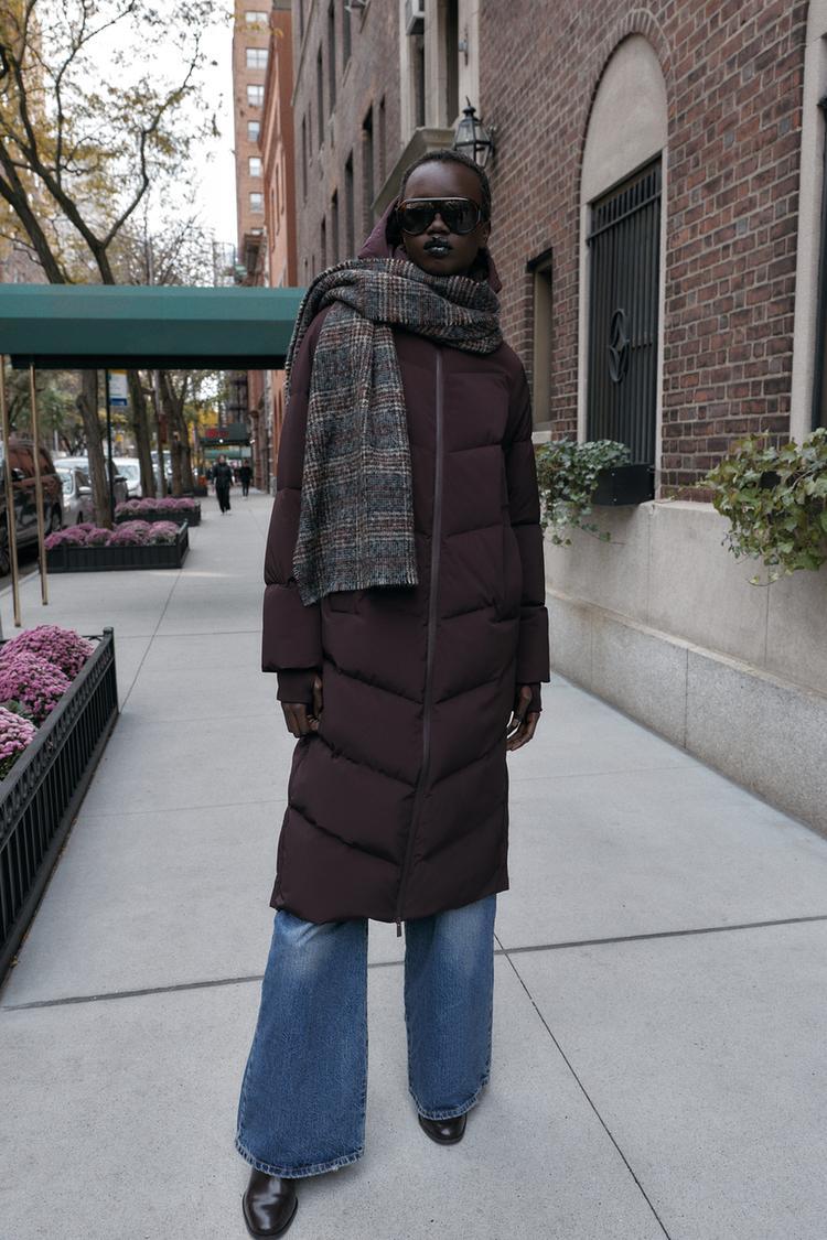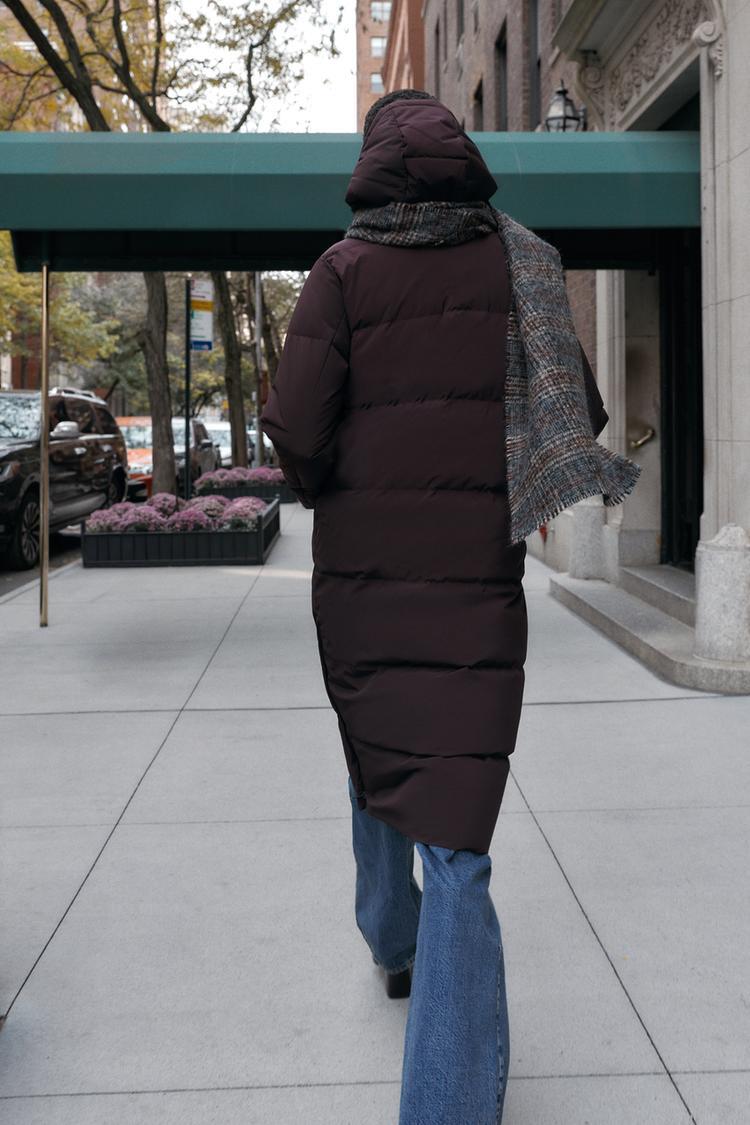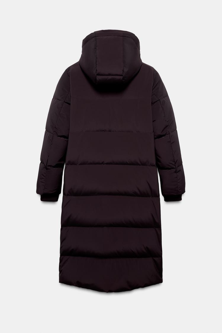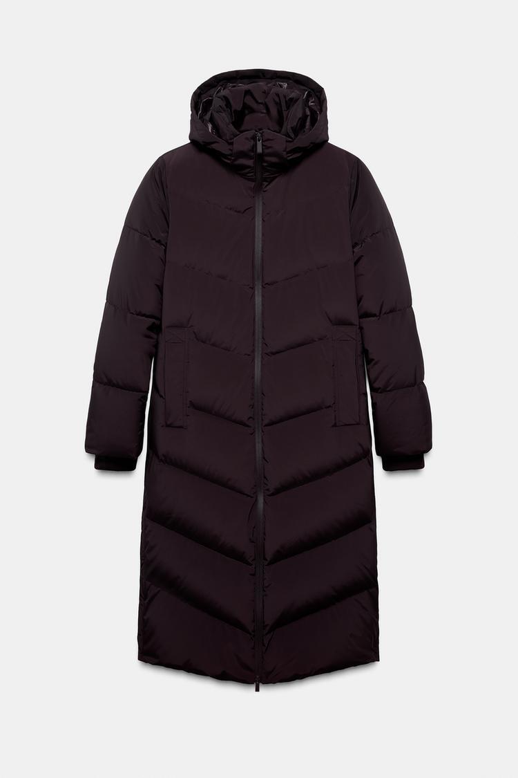 ZARA ДЛИННЫЙ ПУХОВИК С КАПЮШОНОМ WATER REPELLENT WINDPROOF, БУРГУНДИ