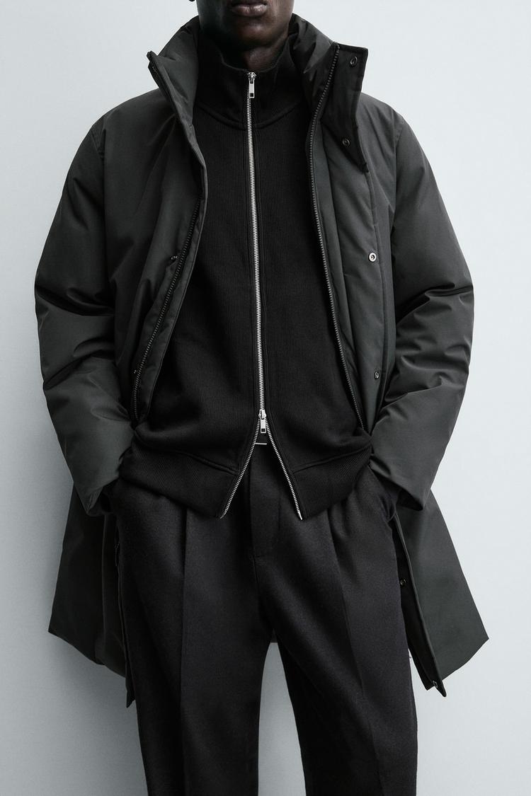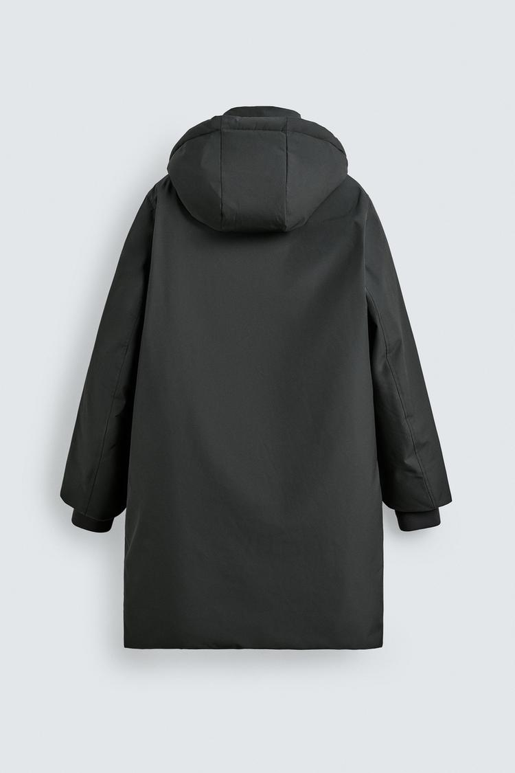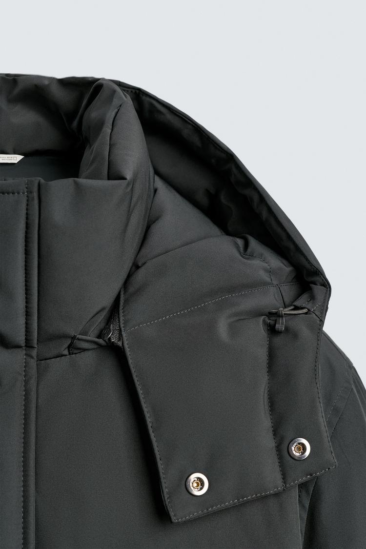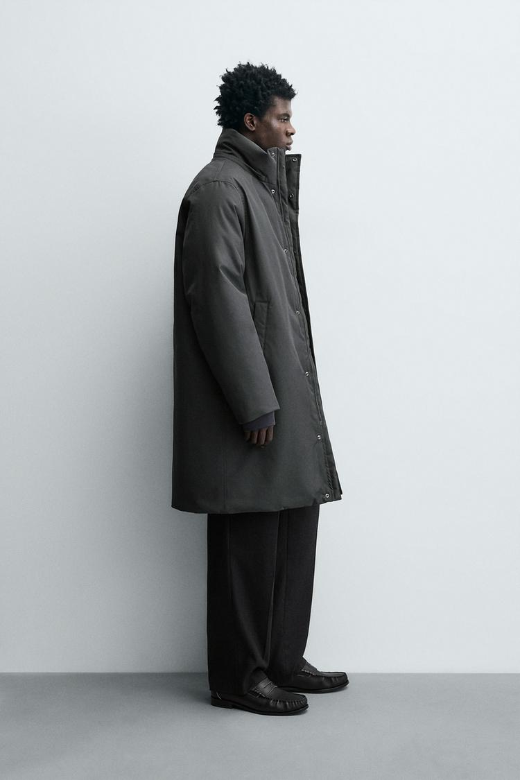 ZARA ДЛИННЫЙ СТЕГАНЫЙ ПУХОВИК, ЗЕЛЕНЫЙ