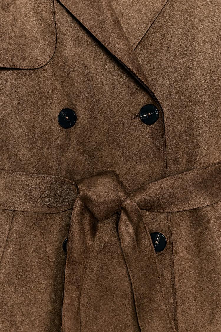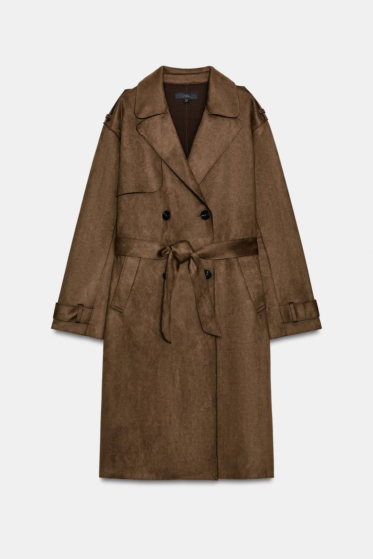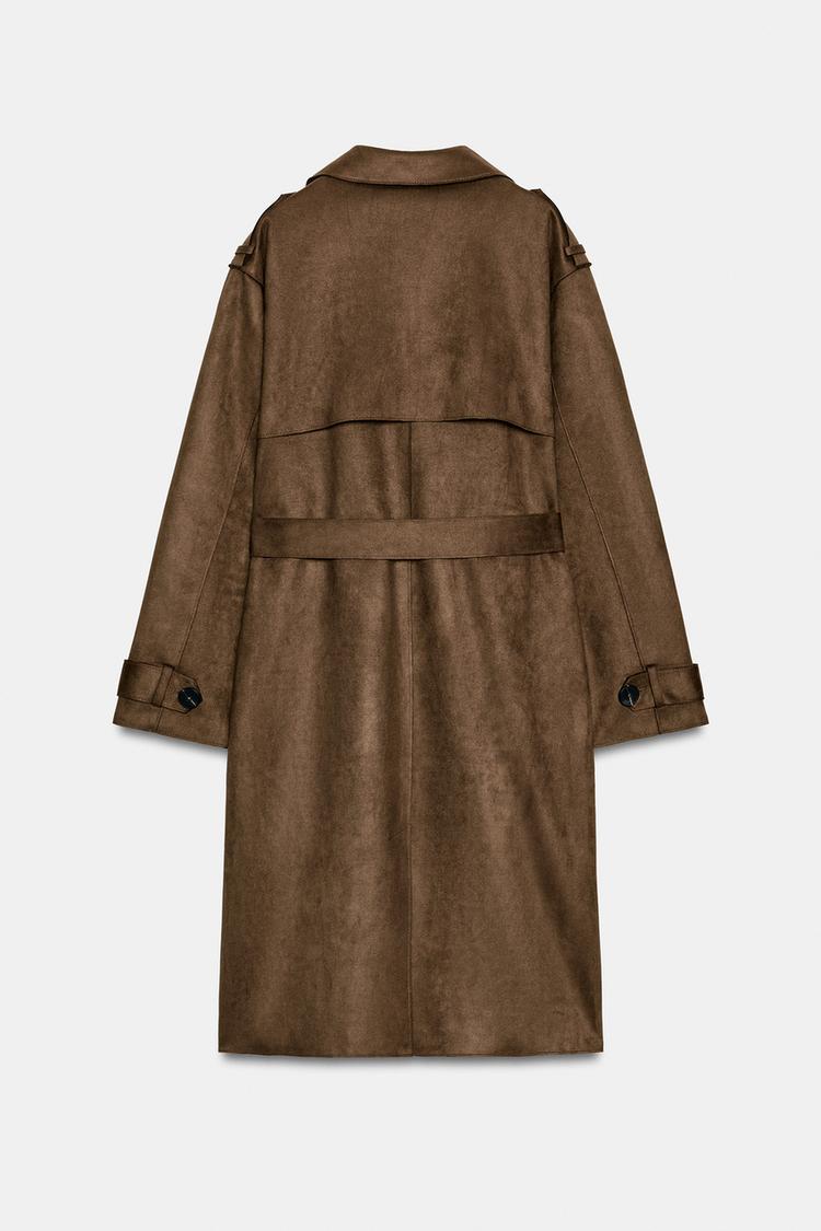 ZARA ДЛИННЫЙ ТРЕНЧ ИЗ ИСКУССТВЕННОЙ ЗАМШИ С ПОЯСОМ, КОРИЧНЕВЫЙ
