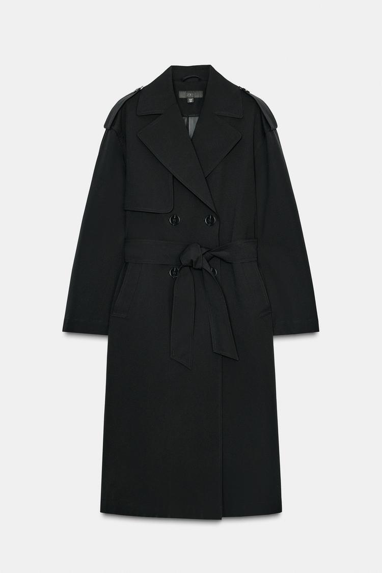 ZARA ДЛИННЫЙ ТРЕНЧ С ПОЯСОМ, ЧЕРНЫЙ