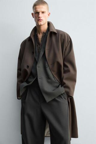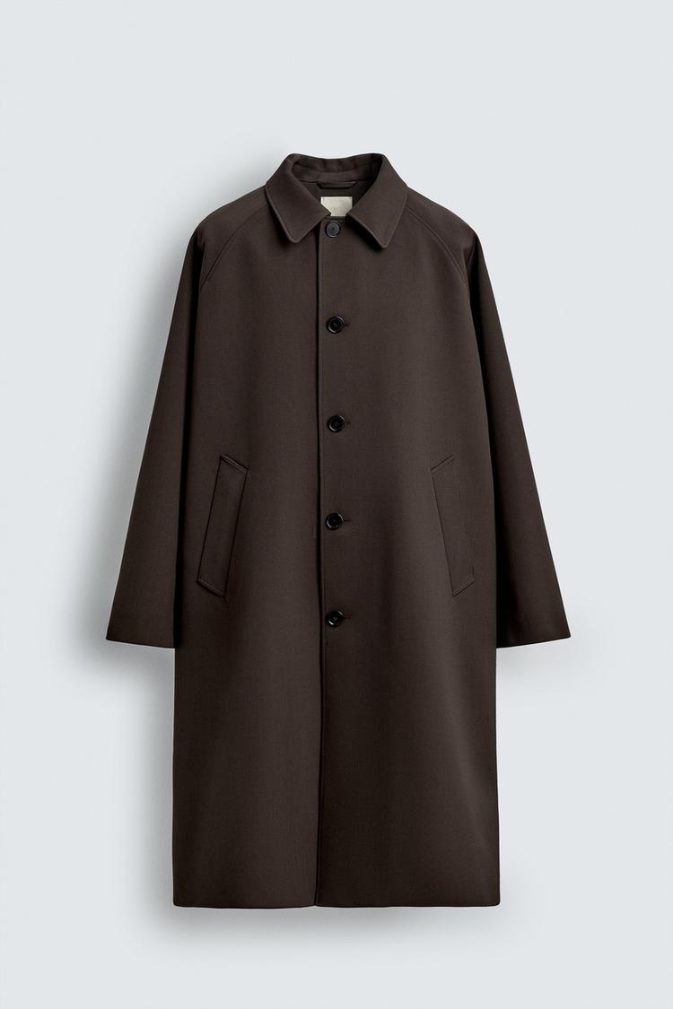 ZARA ДЛИННЫЙ ТРЕНЧ С ШЕРСТЬЮ - LIMITED EDITION, КОРИЧНЕВЫЙ
