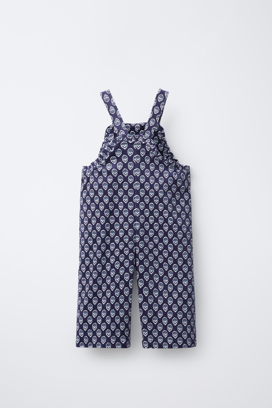 ZARA ДЛИННЫЙ ВЕЛЬВЕТОВЫЙ КОМБИНЕЗОН С ЦВЕТОЧНЫМ ПРИНТОМ, СИНИЙ