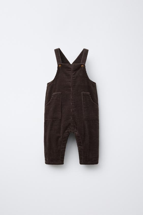ZARA ДЛИННЫЙ ВЕЛЬВЕТОВЫЙ КОМБИНЕЗОН, ТЕМНО-КОРИЧНЕВЫЙ