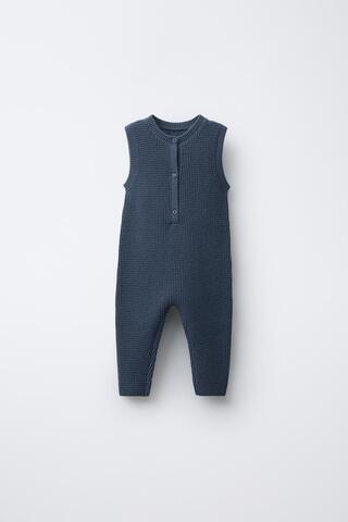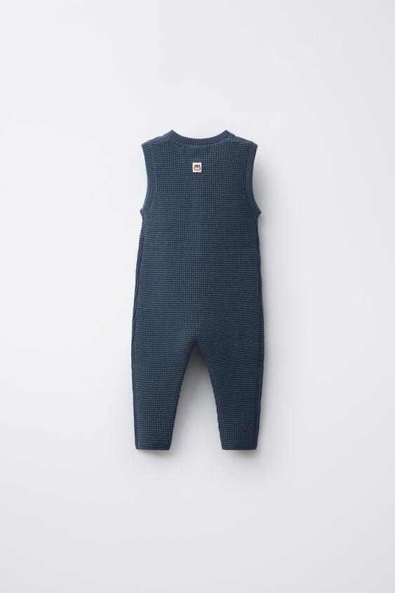 ZARA ДЛИННЫЙ ВЯЗАНЫЙ КОМБИНЕЗОН С ЭТИКЕТКОЙ В ВИДЕ БЕЛКИ, СИНИЙ