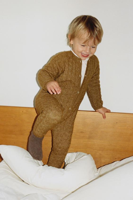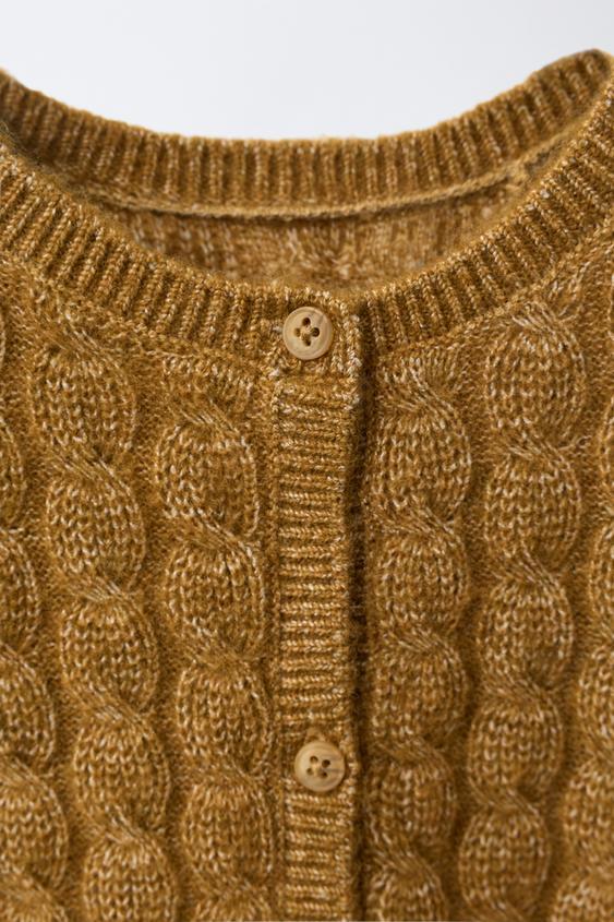 ZARA ДЛИННЫЙ ВЯЗАНЫЙ КОМБИНЕЗОН С КОСАМИ, ОХРА