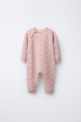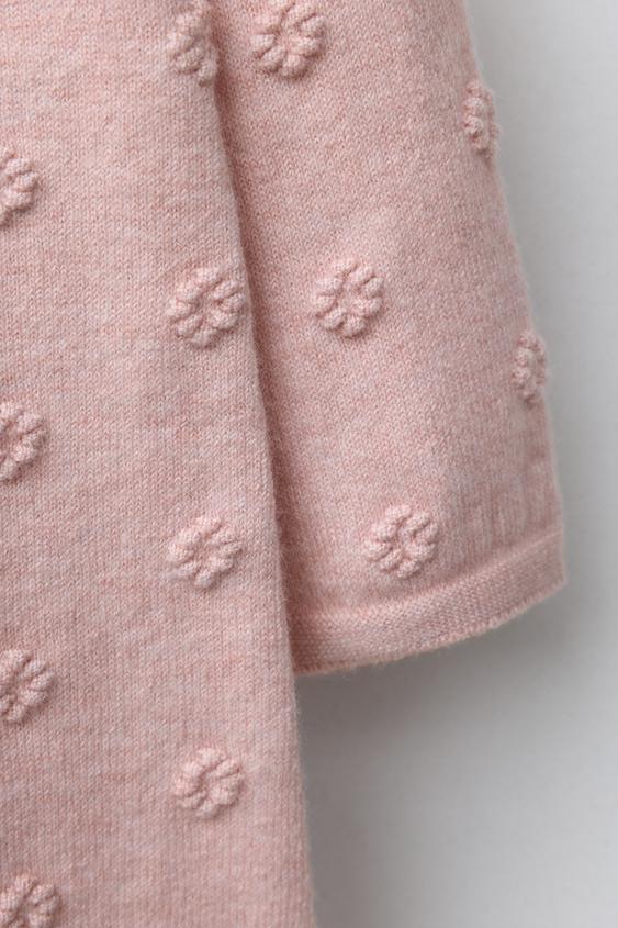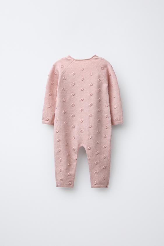 ZARA ДЛИННЫЙ ВЯЗАНЫЙ КОМБИНЕЗОН С ВЫШИТЫМИ ЦВЕТАМИ, СВЕТЛО-РОЗОВЫЙ