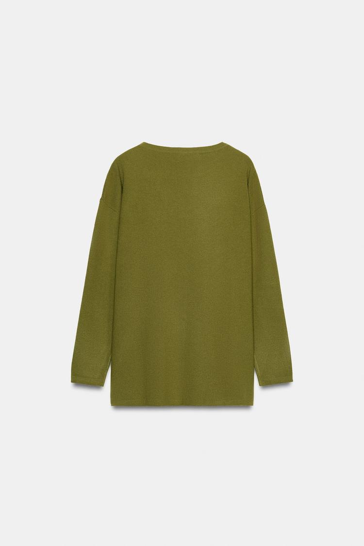 ZARA ДЛИННЫЙ ВЯЗАНЫЙ СВИТЕР, ЦВЕТ МХА