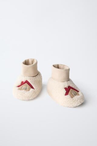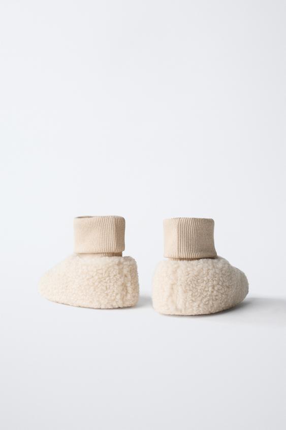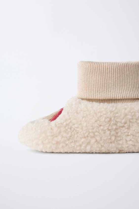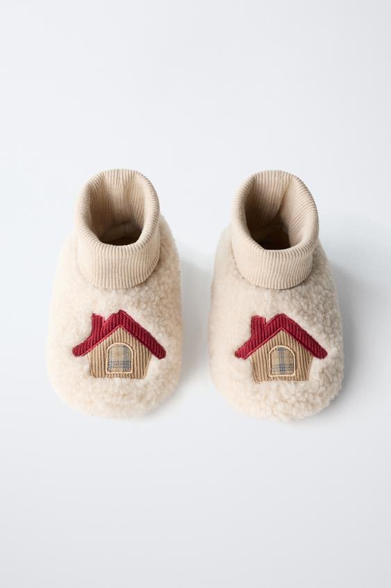 ZARA ДОМАШНИЕ ТАПОЧКИ С ОТДЕЛКОЙ, ЭКРЮ