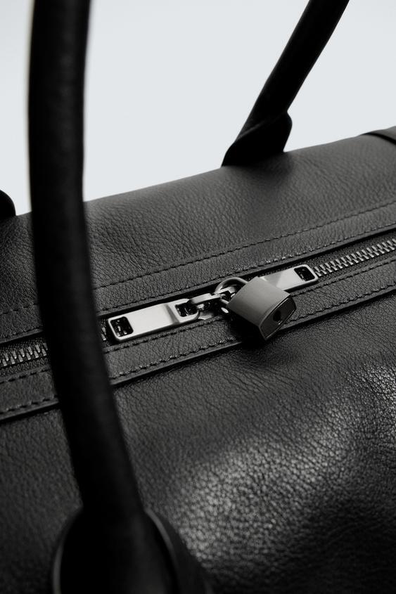 ZARA ДОРОЖНАЯ СУМКА ИЗ КОЖИ, ЧЕРНЫЙ