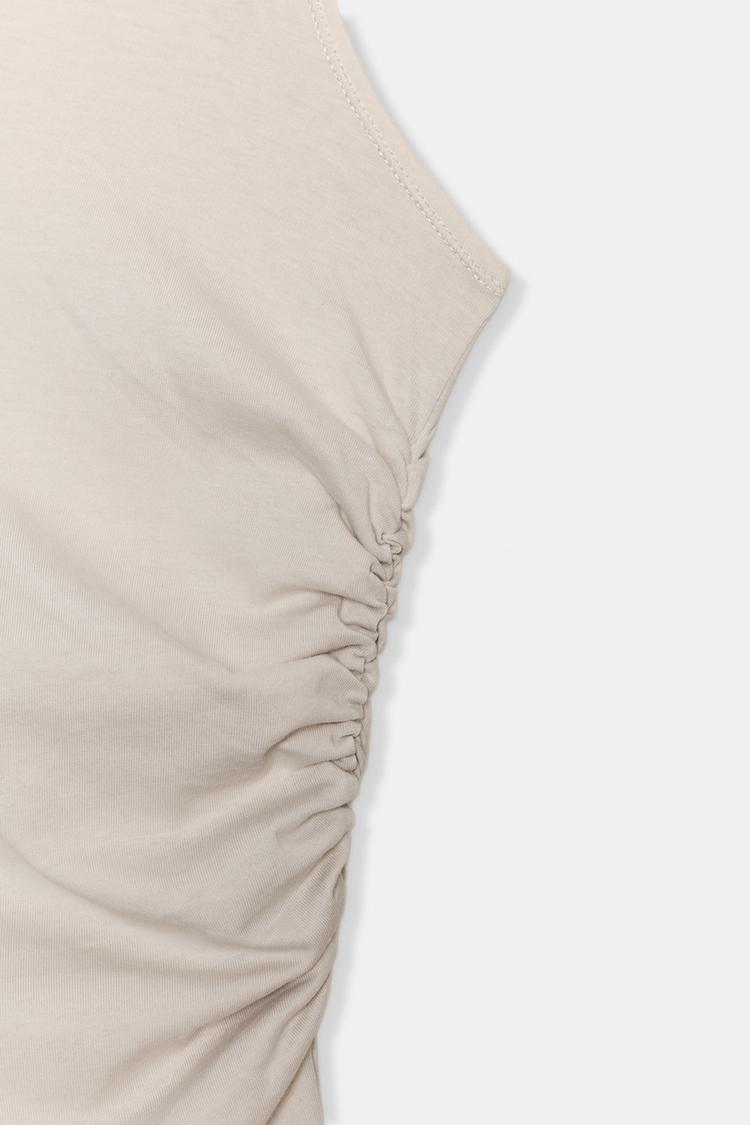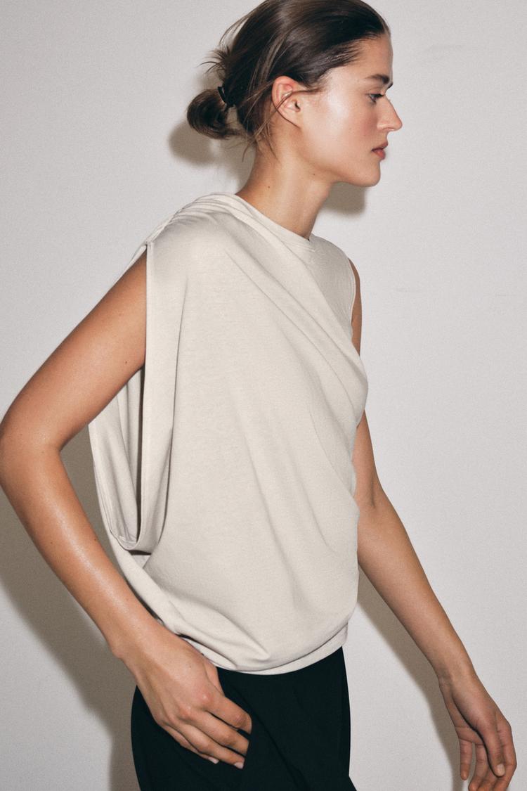 ZARA ДРАПИРОВАННЫЙ ТОП АСИММЕТРИЧНОГО КРОЯ, КАМЕННО-СЕРЫЙ