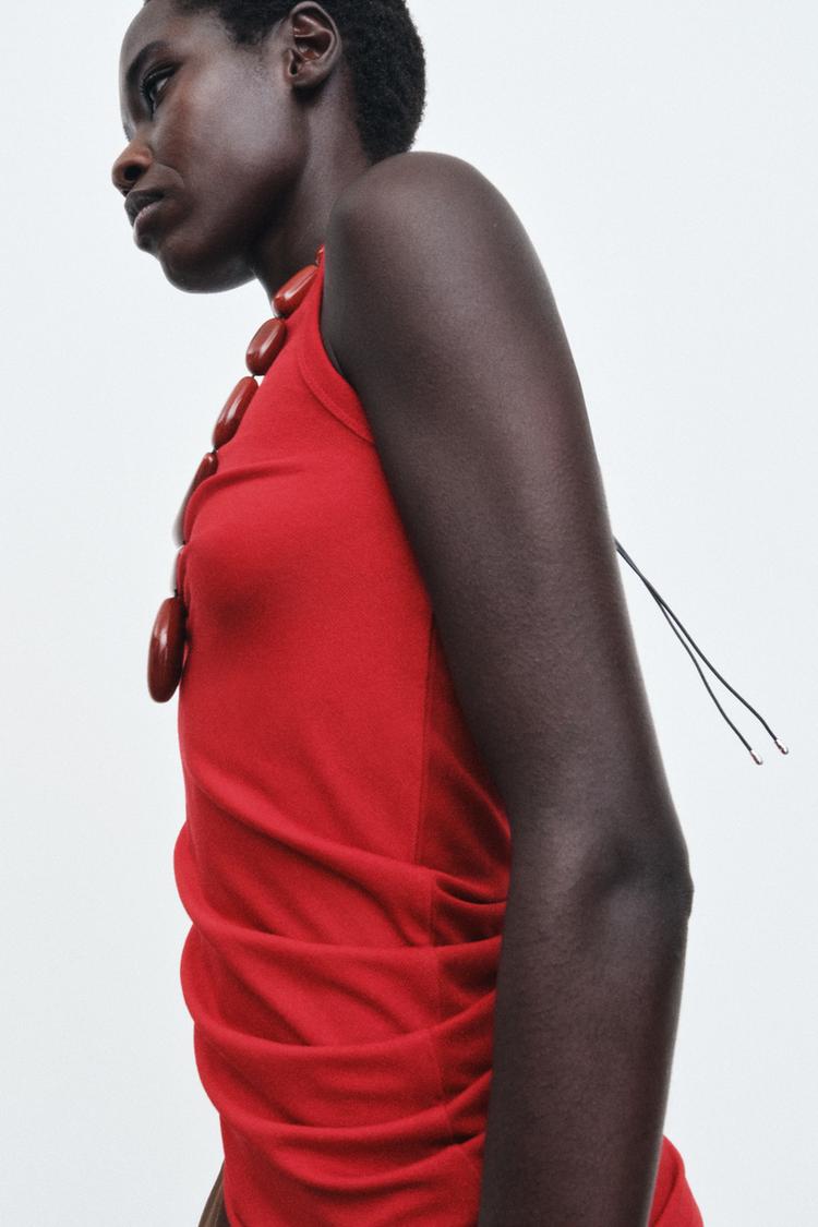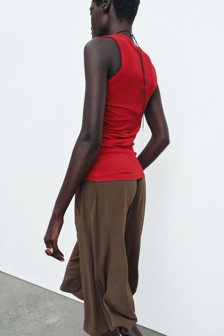 ZARA ДРАПИРОВАННЫЙ ТОП БЕЗ РУКАВОВ, КРАСНЫЙ