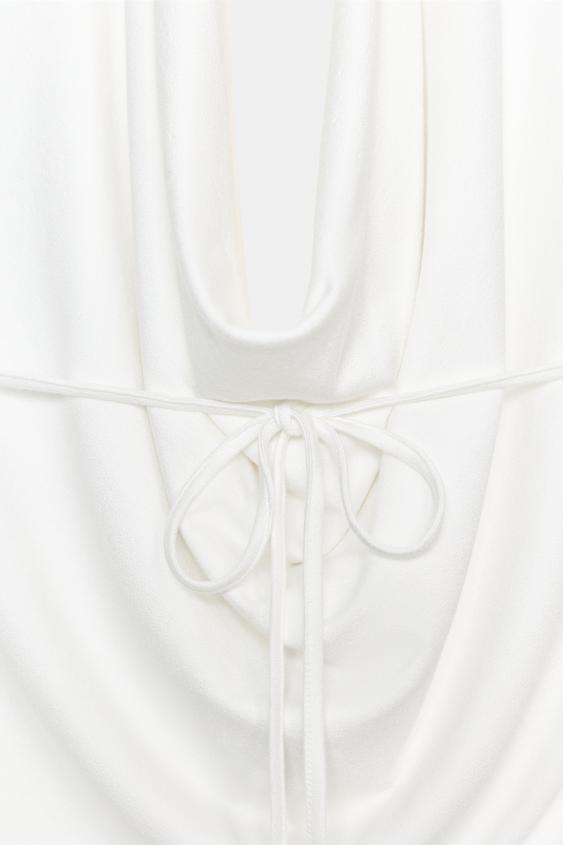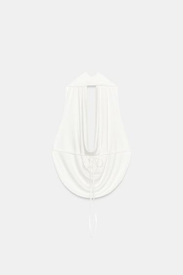 ZARA ДРАПИРОВАННЫЙ ТОП С ГОРЛОВИНОЙ ХАЛТЕР, БЕЛЫЙ
