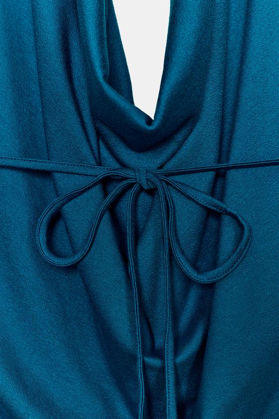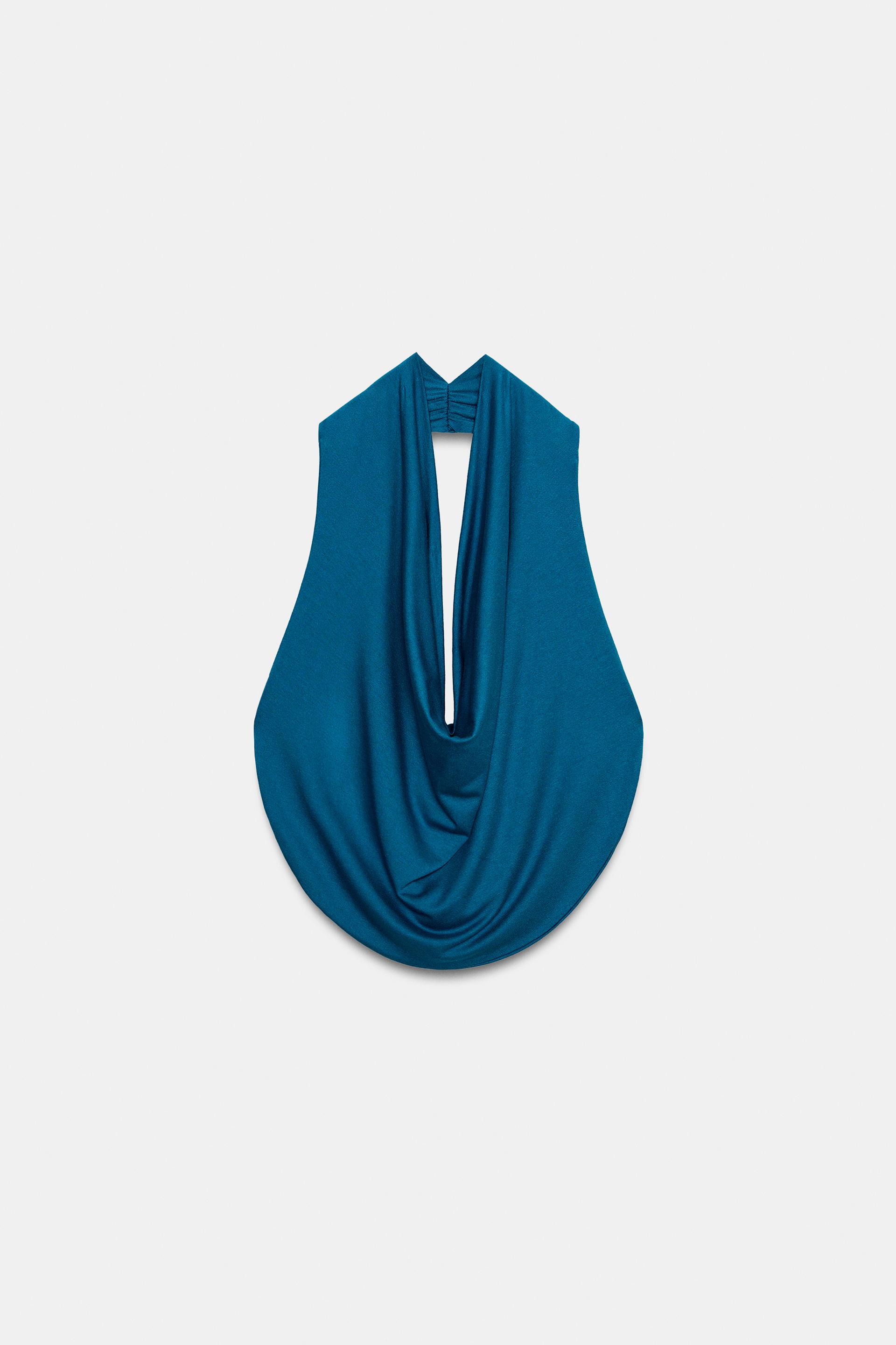 ZARA ДРАПИРОВАННЫЙ ТОП С ГОРЛОВИНОЙ ХАЛТЕР, СИНЕВАТЫЙ