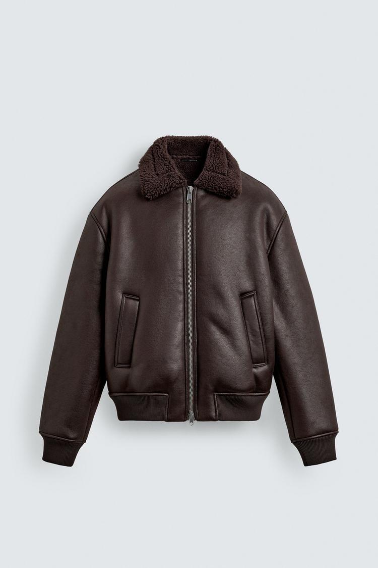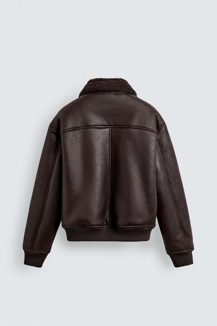 ZARA ДУБЛЕНКА ИЗ ИСКУССТВЕННОЙ КОЖИ, БУРГУНДИ