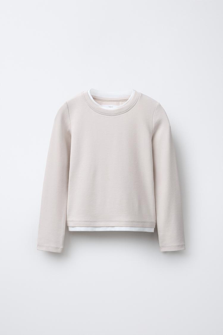 ZARA ДВОЙНАЯ ФУТБОЛКА ИЗ МОДАЛА, ЭКРЮ