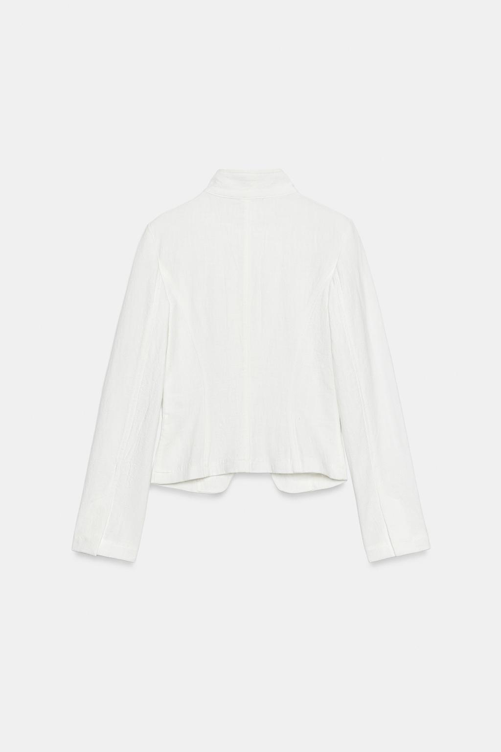 ZARA ДВУБОРТНАЯ КУРТКА ИЗ РАМИ, БЕЛЫЙ