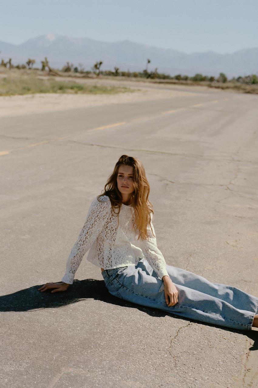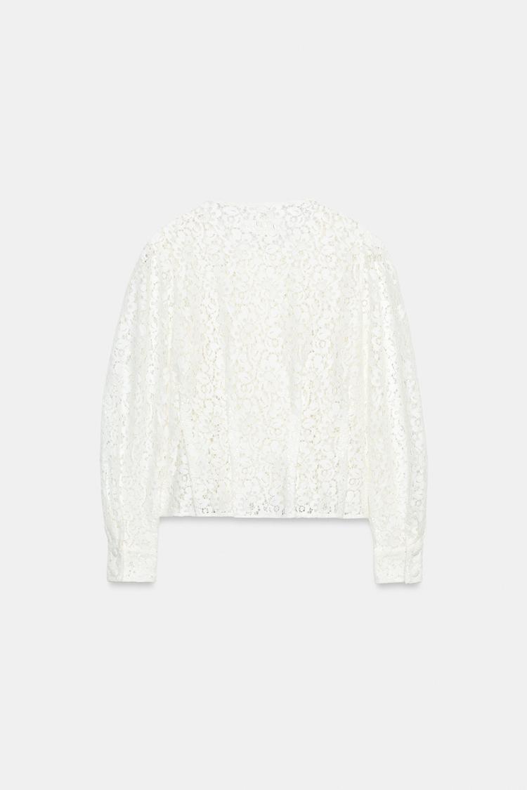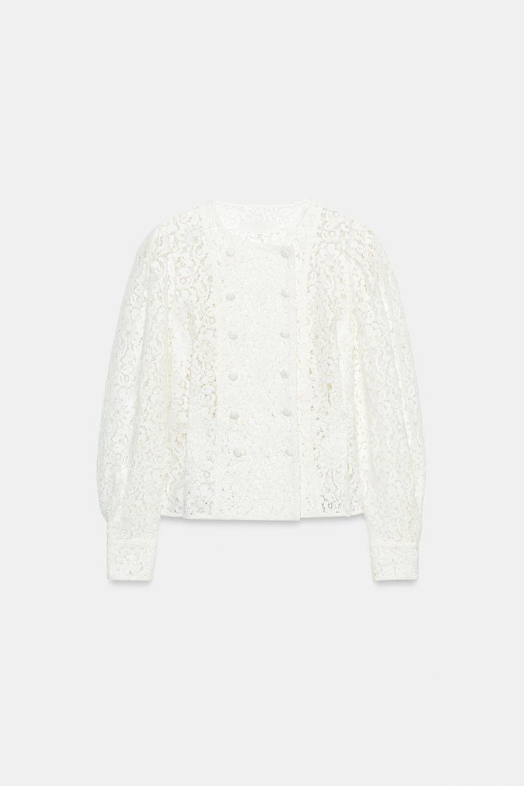 ZARA ДВУБОРТНАЯ КУРТКА С КРУЖЕВОМ, БЕЛЫЙ