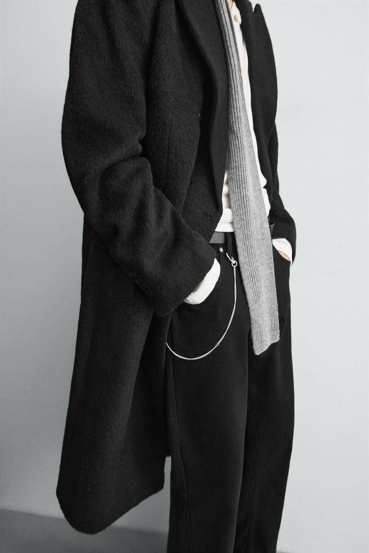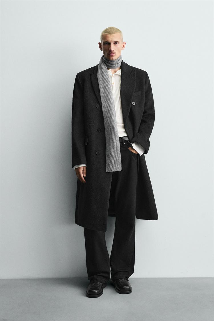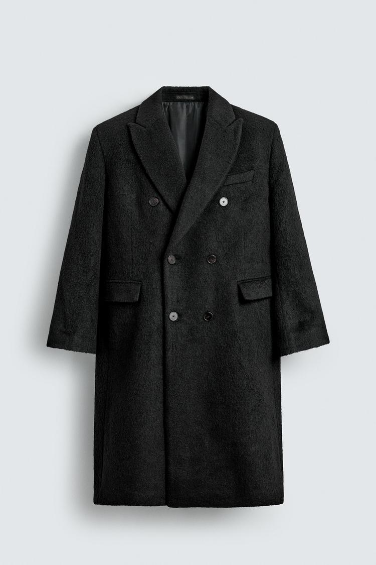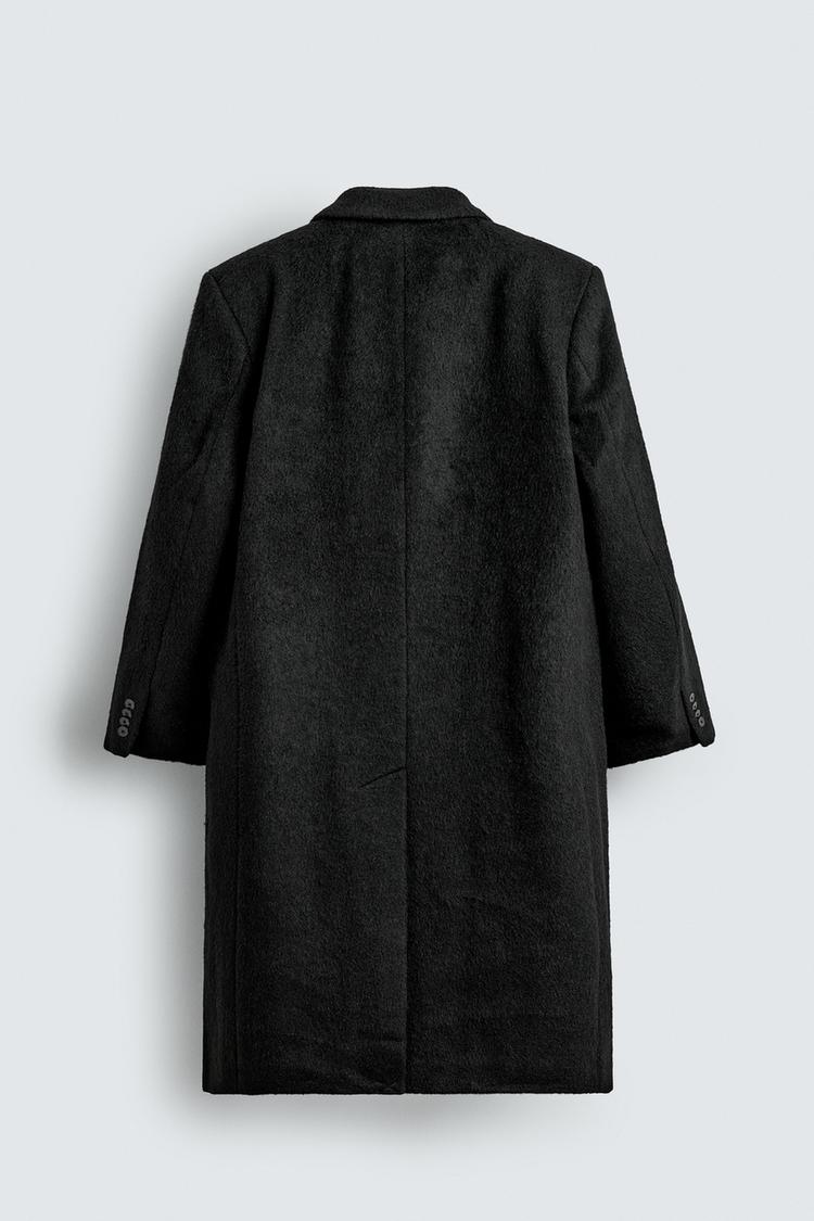 ZARA ДВУБОРТНОЕ ПАЛЬТО ИЗ ШЕРСТИ, ЧЕРНЫЙ