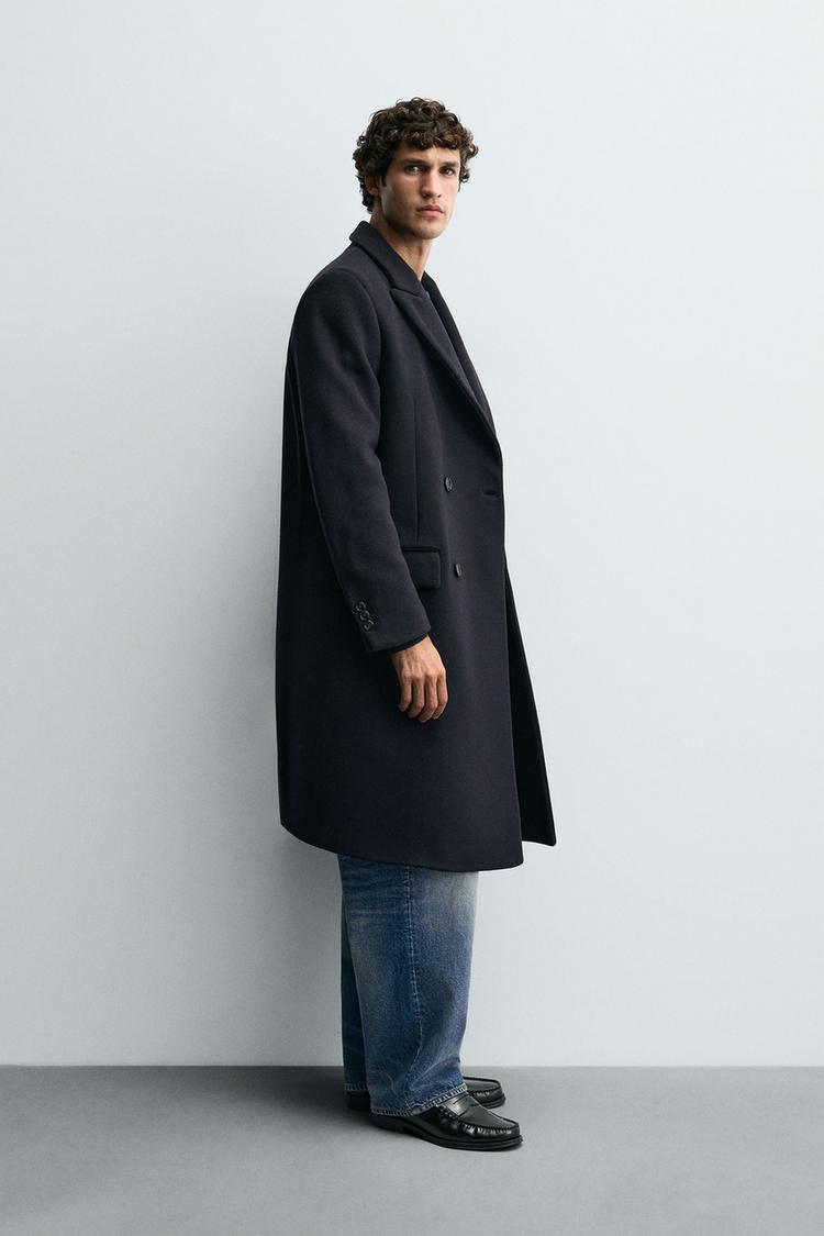 ZARA ДВУБОРТНОЕ ПАЛЬТО ИЗ СМЕСОВОЙ ШЕРСТИ MANTECO ®, МОРСКОЙ СИНИЙ