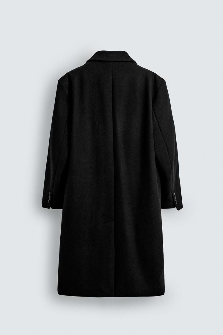 ZARA ДВУБОРТНОЕ ПАЛЬТО ОВЕРСАЙЗ ИЗ СМЕСОВОЙ ШЕРСТИ, ЧЕРНЫЙ