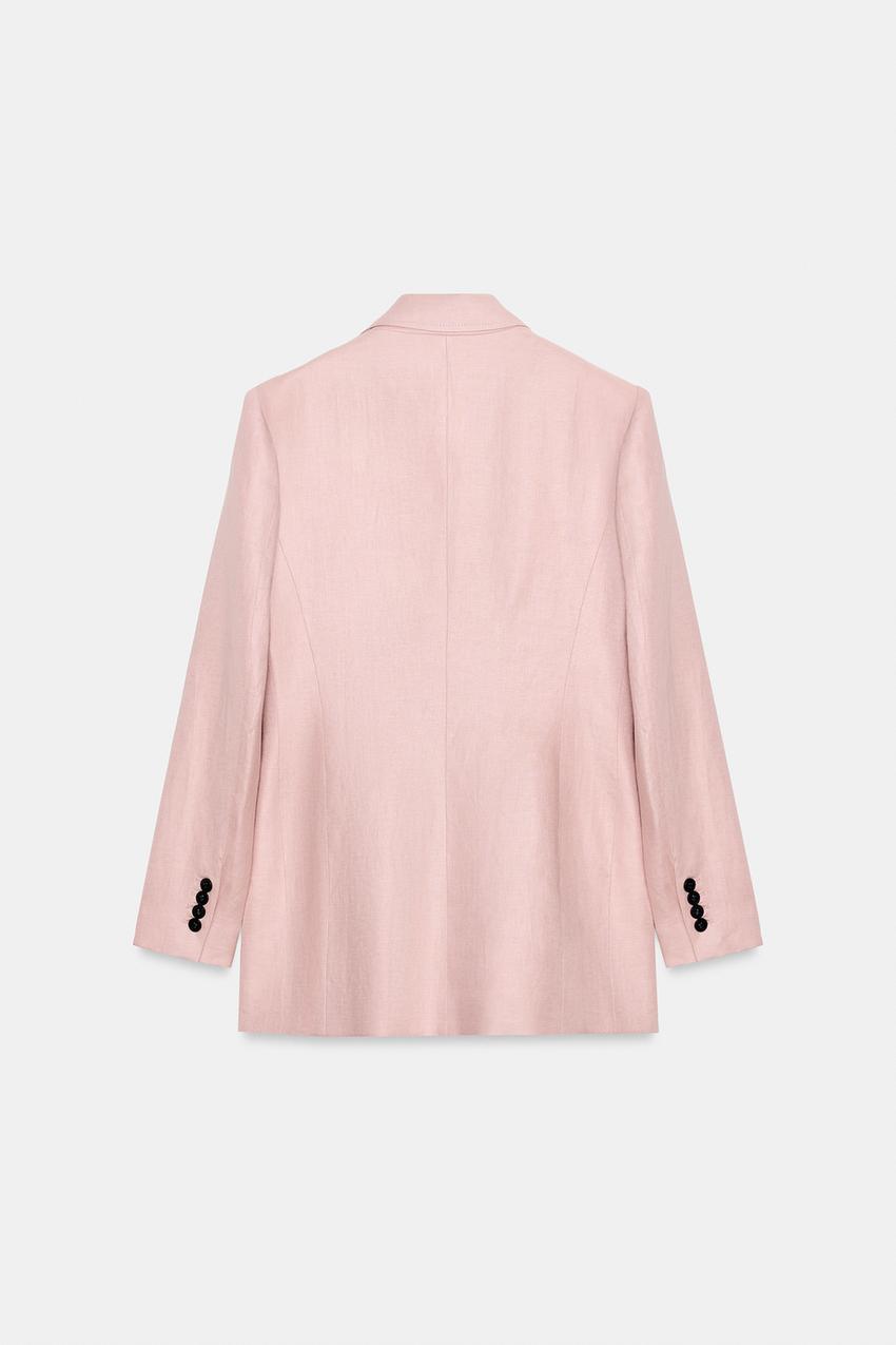 ZARA ДВУБОРТНЫЙ БЛЕЙЗЕР ИЗ 100% ЛЬНА, ТЕЛЕСНО-РОЗОВЫЙ